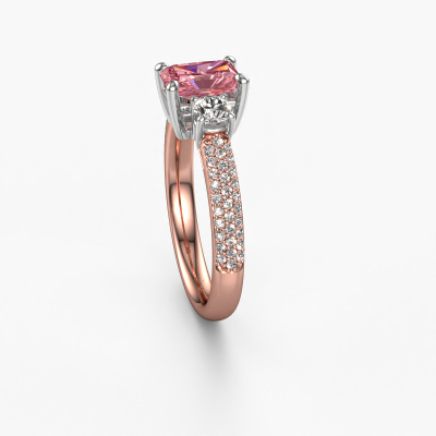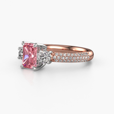 Dieser Ring aus 14 Karat Roségold heißt Marielle RAD und hat 7x5 mm rosa Labordiamant. Dieser zierliche 14 Karat Roségold 3-stone Verlobungsring ist ein wahres Kunstwerk! Die Ornamente werden mit viel Geduld und großer Leidenschaft gefertigt. Um diesen Ring mit großer Präzision zu schaffen, erfordert dieses Handwerk ein scharfes Auge und eine geschickte Hand. Eine Herausforderung, die bei unseren erfahrenen Juwelieren ein Feuer entfacht. Die exquisiten rosa Labordiamanten sind auf eine besondere Art und Weise gefasst, so dass sie noch mehr hervorstechen. Dies verleiht dem Ring eine noch glamourösere Erscheinung. Der Ring an sich ist schon wegen der Edelsteine einzigartig, die wir speziell für diesen Ring auswählen. Obendrein wählen Sie die Edelmetalle aus, mit denen Ihr einzigartiger Ring für die außergewöhnlichste Frau Ihres Lebens gemacht wird! Jedes Schmuckstück ist um Ihrem Finger Glanz zu verleihen. Jeder Ring wird von unseren Goldschmieden liebevoll von Hand gefertigt.Durch die Kombination modernster Technik mit uralter Handwerkskunst können wir alle Verlobungsringe in unserem eigenen Studio anfertigen. Jedes Schmuckstück wird auf Anfrage gefertigt. Das ist vorteilhaft, weil wir Ihnen dadurch einen Preis anbieten können, den Sie nirgendwo anders finden.Verschiedene Arten von neuen Ringen werden täglich von unserem Team angefertigt. Vielleicht haben Sie irgendwo einen 3-stone Verlobungsring gefunden. Einen, den Sie Ihrem Liebsten schenken möchten. Bitte zögern Sie nicht, unseren Schmuckdesignern Ihre Gedanken und Ihr Design zu zeigen. Wir würden gerne Ihr Design in einen moderne Verlobungsring verwandeln. Sie können die Entwicklungen Ihres Ringdesigns verfolgen, da wir sehr detaillierte 3D-Zeichnungen verwenden. Darüber hinaus können Sie einen Dummy des Designs bestellen. Ein Dummy ist ein Kunststoffring, der nach Ihrem Ringdesign gestaltet werden kann. Sie können ihn anprobieren und prüfen, ob der Verlobungsring Ihren Vorstellungen entspricht. Wir senden Ihnen gerne ein unverbindliches Angebot zu einem fairen Preis/Leistungsverhältnis. Das Angebot wird Sie angesichts der Qualität des Rings und der Edelsteine verblüffen.Um es einfacher zu machen, bieten wir eine kostenlose 30-tägige Rücksendung.