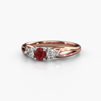 Dieser Ring aus 14 Karat Roségold heißt Amie RND und hat 4.2 mm Rubin. Dieser zierliche 14 Karat Roségold 3-stone Verlobungsring ist ein wahres Kunstwerk! Die Ornamente werden mit viel Geduld und großer Leidenschaft gefertigt. Um diesen Ring mit großer Präzision zu schaffen, erfordert dieses Handwerk ein scharfes Auge und eine geschickte Hand. Eine Herausforderung, die bei unseren erfahrenen Juwelieren ein Feuer entfacht. Die exquisiten Rubin sind auf eine besondere Art und Weise gefasst, so dass sie noch mehr hervorstechen. Dies verleiht dem Ring eine noch glamourösere Erscheinung. Der Ring an sich ist schon wegen der Edelsteine einzigartig, die wir speziell für diesen Ring auswählen. Obendrein wählen Sie die Edelmetalle aus, mit denen Ihr einzigartiger Ring für die außergewöhnlichste Frau Ihres Lebens gemacht wird! Jedes Schmuckstück wird hergestellt mit Leidenschaft und Liebe, von einem unserer Meister-Goldschmiede.Da wir unsere eigenen Ringe entwerfen und liefern, können wir Ihnen einen Verlobungsring zu einem Preis anbieten, den Sie nirgendwo anders finden. Ein Ring wird auf Bestellung angefertigt, wodurch kein überschüssiges Material anfällt. So können wir Ihnen ein gutes Angebot zum besten Preis machen. Wir verstehen, dass es sich riskant anfühlt, Ihren Verlobungsring online zu kaufen. Jedoch helfen wir Ihnen gerne beim Designprozess unter Berücksichtigung Ihres Budgets.Unsere Designer und Goldschmiede arbeiten jeden Tag zusammen und versuchen, neue Schmuckstücke zu kreieren. Vielleicht haben Sie irgendwo einen schönen, klassische Verlobungsring gefunden, nach dem Ihr einzigartiger Ring gestaltet werden kann. Setzen Sie sich mit uns in Verbindung. Wir machen Ihnen ein Angebot, basierend auf einem fairen Preis/Leistungsverhältnis, das Sie begeistern wird.Um es einfacher zu machen, bieten wir eine kostenlose 30-tägige Rücksendung.