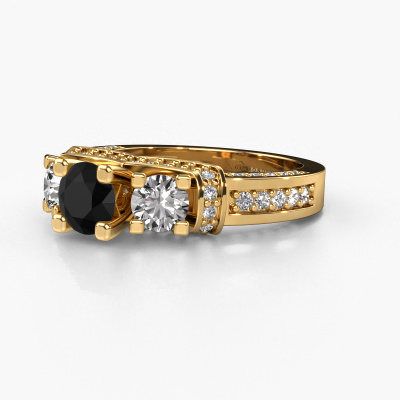 Dieser Ring aus 14 Karat Gold heißt Phileine und hat 1.595 crt Schwarz Diamant. Dieser gewagte 14 Karat Gold 3-stone Verlobungsring ist ein wahres Kunstwerk! Die Ornamente werden mit viel Geduld und großer Leidenschaft gefertigt. Um diesen Ring mit großer Präzision zu schaffen, erfordert dieses Handwerk ein scharfes Auge und eine geschickte Hand. Eine Herausforderung, die bei unseren erfahrenen Juwelieren ein Feuer entfacht. Die exquisiten Schwarze Diamanten sind auf eine besondere Art und Weise gefasst, so dass sie noch mehr hervorstechen. Dies verleiht dem Ring eine noch glamourösere Erscheinung. Der Ring an sich ist schon wegen der Edelsteine einzigartig, die wir speziell für diesen Ring auswählen. Obendrein wählen Sie die Edelmetalle aus, mit denen Ihr einzigartiger Ring für die außergewöhnlichste Frau Ihres Lebens gemacht wird! Jedes Schmuckstück wird hergestellt mit Leidenschaft und Liebe, von einem unserer Meister-Goldschmiede.Nach Erhalt Ihrer Bestellung beginnen unsere Goldschmiede mit Leidenschaft den kreativen Prozess und fertigen Ihren Verlobungsring in unserem eigenen Studio. Da wir keine großen Lager haben, werden diese Kosten nicht an Sie weitergegeben. Unsere Preisgestaltung ist der Beweis dafür! Wir bieten Schmuck zum niedrigsten Preis, garantiert.Verschiedene Arten von neuen Ringen werden täglich von unserem Team angefertigt. Vielleicht haben Sie irgendwo einen 3-stone Verlobungsring gefunden. Einen, den Sie Ihrem Liebsten schenken möchten. Bitte zögern Sie nicht, unseren Schmuckdesignern Ihre Gedanken und Ihr Design zu zeigen. Wir würden gerne Ihr Design in einen exklusive Verlobungsring verwandeln. Sie können die Entwicklungen Ihres Ringdesigns verfolgen, da wir sehr detaillierte 3D-Zeichnungen verwenden. Darüber hinaus können Sie einen Dummy des Designs bestellen. Ein Dummy ist ein Kunststoffring, der nach Ihrem Ringdesign gestaltet werden kann. Sie können ihn anprobieren und prüfen, ob der Verlobungsring Ihren Vorstellungen entspricht. Wir senden Ihnen gerne ein unverbindliches Angebot zu einem fairen Preis/Leistungsverhältnis. Das Angebot wird Sie angesichts der Qualität des Rings und der Edelsteine verblüffen.Um es einfacher zu machen, bieten wir eine kostenlose 30-tägige Rücksendung.