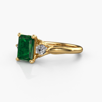 Dieser Ring aus 14 Karat Gold heißt Laurian EME und hat 8x6 mm Smaragd. Dieser besondere 14 Karat Gold 3-stone Verlobungsring ist ein wahres Kunstwerk! Die Ornamente werden mit viel Geduld und großer Leidenschaft gefertigt. Um diesen Ring mit großer Präzision zu schaffen, erfordert dieses Handwerk ein scharfes Auge und eine geschickte Hand. Eine Herausforderung, die bei unseren erfahrenen Juwelieren ein Feuer entfacht. Die exquisiten Smaragd sind auf eine besondere Art und Weise gefasst, so dass sie noch mehr hervorstechen. Dies verleiht dem Ring eine noch glamourösere Erscheinung. Der Ring an sich ist schon wegen der Edelsteine einzigartig, die wir speziell für diesen Ring auswählen. Obendrein wählen Sie die Edelmetalle aus, mit denen Ihr einzigartiger Ring für die außergewöhnlichste Frau Ihres Lebens gemacht wird! Jedes Schmuckstück ist einzigartig in jeder Hinsicht! Einfach nach Ihren Wünschen anzupassen.Durch die Kombination modernster Technik mit uralter Handwerkskunst können wir alle Verlobungsringe in unserem eigenen Studio anfertigen. Jedes Schmuckstück wird auf Anfrage gefertigt. Das ist vorteilhaft, weil wir Ihnen dadurch einen Preis anbieten können, den Sie nirgendwo anders finden.Unser Team fügt unserer Online-Kollektion täglich neue Designs hinzu. Unsere Designer und Goldschmiede arbeiten zusammen, um das beste Design zu kreieren. Wir bemühen uns, eine vielfältige Kollektion von Schmuckstücken anzubieten. Vielleicht haben Sie ein bestimmtes Design im Sinn. Eines, dass Sie irgendwo gesehen haben. Gerne geben wir Ihnen eine kostenlose Beratung. Wir machen Ihnen ein Angebot, basierend auf einem fairen Preis/Leistungsverhältnis, das Sie verblüffen wird.Um es einfacher zu machen, bieten wir eine kostenlose 30-tägige Rücksendung.