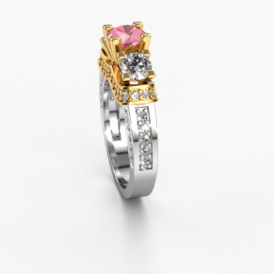 Dieser Ring aus 14 Karat Weißgold heißt Phileine und hat 5 mm Turmalin rosa. Dieser gewagte 14 Karat Weißgold 3-stone Verlobungsring ist ein wahres Kunstwerk! Die Ornamente werden mit viel Geduld und großer Leidenschaft gefertigt. Um diesen Ring mit großer Präzision zu schaffen, erfordert dieses Handwerk ein scharfes Auge und eine geschickte Hand. Eine Herausforderung, die bei unseren erfahrenen Juwelieren ein Feuer entfacht. Die exquisiten Turmalin rosa sind auf eine besondere Art und Weise gefasst, so dass sie noch mehr hervorstechen. Dies verleiht dem Ring eine noch glamourösere Erscheinung. Der Ring an sich ist schon wegen der Edelsteine einzigartig, die wir speziell für diesen Ring auswählen. Obendrein wählen Sie die Edelmetalle aus, mit denen Ihr einzigartiger Ring für die außergewöhnlichste Frau Ihres Lebens gemacht wird! Jedes Schmuckstück wird hergestellt mit Leidenschaft und Liebe, von einem unserer Meister-Goldschmiede.Nach Erhalt Ihrer Bestellung beginnen unsere Goldschmiede mit Leidenschaft den kreativen Prozess und fertigen Ihren Verlobungsring in unserem eigenen Studio. Da wir keine großen Lager haben, werden diese Kosten nicht an Sie weitergegeben. Unsere Preisgestaltung ist der Beweis dafür! Wir bieten Schmuck zum niedrigsten Preis, garantiert.Verschiedene Arten von neuen Ringen werden täglich von unserem Team angefertigt. Vielleicht haben Sie irgendwo einen 3-stone Verlobungsring gefunden. Einen, den Sie Ihrem Liebsten schenken möchten. Bitte zögern Sie nicht, unseren Schmuckdesignern Ihre Gedanken und Ihr Design zu zeigen. Wir würden gerne Ihr Design in einen exklusive Verlobungsring verwandeln. Sie können die Entwicklungen Ihres Ringdesigns verfolgen, da wir sehr detaillierte 3D-Zeichnungen verwenden. Darüber hinaus können Sie einen Dummy des Designs bestellen. Ein Dummy ist ein Kunststoffring, der nach Ihrem Ringdesign gestaltet werden kann. Sie können ihn anprobieren und prüfen, ob der Verlobungsring Ihren Vorstellungen entspricht. Wir senden Ihnen gerne ein unverbindliches Angebot zu einem fairen Preis/Leistungsverhältnis. Das Angebot wird Sie angesichts der Qualität des Rings und der Edelsteine verblüffen.Um es einfacher zu machen, bieten wir eine kostenlose 30-tägige Rücksendung.