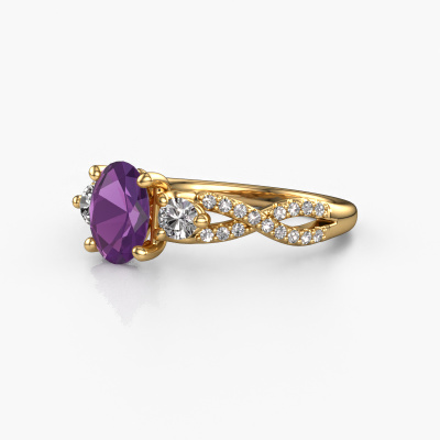 Dieser Verlobungsring aus 14 Karat Gold mit Amethyst heißt Marilou OVL. Halten Sie mit den neuesten Modetrends Schritt? Möchten Sie einen einzigartigen Verlobungsring, der zu Ihrem Lebensstil passt? Dieser geschmackvolle Verlobungsring ist ein außergewöhnlicher Ring, der individuell an Ihren persönlichen Stil angepasst werden kann. Dieser moderne, Gold Verlobungsring ist mit Amethysten besetzt. Diese Amethysten werden sorgfältig für diesen speziellen Ring ausgewählt, um mit ihm den besten Effekt zu erzielen. Unser erfahrener Juwelier kreiert Ihren Ring in unserem eigenen Studio, wo der Amethyst mit großer Sorgfalt eingefasst wird. Der Ring wird dann bis zur Perfektion bearbeitet und poliert. Nichts als das Beste für die Liebe Ihres Lebens! Jedes Schmuckstück wird von unseren Meister-Goldschmieden in unserem eigenen Studio für Sie gefertigt.Mit unserer modernen Technik können wir Schmuckstücke von höchster Qualität mit größter Sorgfalt für Sie entwerfen und anpassen. Unsere Verlobungsringe sind immer um 30 Prozent günstiger als bei anderen Juwelieren. Wir fertigen Verlobungsringe auf Bestellung, also müssen wir keine großen Lager unterhalten. Wenn Sie ein bestimmtes Budget haben, beraten wir Sie gerne entsprechend.Haben Sie einen bestimmten Ring im Sinn? Eines, dass Sie irgendwo gesehen haben. Bitte zögern Sie nicht, uns zu sagen, was Sie wollen und wir werden Ihr Design in einen Einzigartigen Verlobungsring verwandeln. Sie können die Entwicklungen Ihres Ringdesigns verfolgen, da wir 3D-Zeichnungen verwenden. Das gibt Ihnen eine realistische Vorschau Ihres Designs. Wir senden Ihnen gerne ein unverbindliches Angebot zu einem fairen Preis/Leistungsverhältnis. Es wird Sie erstaunen.Um es einfacher zu machen, bieten wir eine kostenlose 30-tägige Rücksendung.