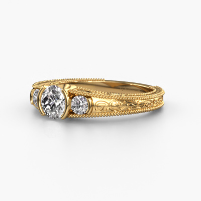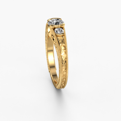 Dieser Filigrane Verlobungsring aus 14 Karat Gold heißt Tasia und hat 0.80 crt Diamant. Ist Ihre Freundin von Vintage begeistert? Dann wird dieser Gold Verlobungsring sicherlich perfekt zu ihrem Stil passen. Ein trendiger Ring mit einem Hauch von klassischem Schmuck. Ein wirklich atemberaubendes, romantisches Design! Vor allem, wenn Sie den Ring nach ihren Wünschen anpassen. Dieser Vintage 3-stone Verlobungsring ist mit atemberaubenden Diamanten besetzt. Wie Sie sehen können, sind Sie der Boss bei der Auswahl des Edelsteins, der am besten zu Ihrer Freundin passt. Jeder Edelstein wird sorgfältig von unseren Händlern ausgewählt, die auf der ganzen Welt verteilt sind. Nichts als die besten Edelsteine für unseren erfahrenen Juwelier! Schließlich ist es seine Krönung! Jedes Schmuckstück wird hergestellt mit Leidenschaft und Liebe, von einem unserer Meister-Goldschmiede.Durch die Kombination modernster Technik mit uralter Handwerkskunst können wir alle Verlobungsringe in unserem eigenen Studio anfertigen. Jedes Schmuckstück wird auf Anfrage gefertigt. Das ist vorteilhaft, weil wir Ihnen dadurch einen Preis anbieten können, den Sie nirgendwo anders finden.Unser Team fügt unserer Online-Kollektion täglich neue Designs hinzu. Unsere Designer und Goldschmiede arbeiten zusammen, um das beste Design zu kreieren. Wir bemühen uns, eine vielfältige Kollektion von Schmuckstücken anzubieten. Vielleicht haben Sie ein bestimmtes Design im Sinn. Eines, dass Sie irgendwo gesehen haben. Gerne geben wir Ihnen eine kostenlose Beratung. Wir machen Ihnen ein Angebot, basierend auf einem fairen Preis/Leistungsverhältnis, das Sie verblüffen wird.Um es einfacher zu machen, bieten wir eine kostenlose 30-tägige Rücksendung.