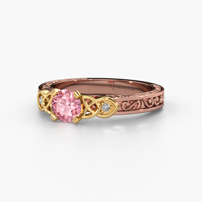 Dieser ajour Verlobungsring aus 14 Karat Roségold heißt Gillian und hat 5 mm rosa Labordiamant. Ist Ihre Freundin von Vintage begeistert? Dann wird dieser Roségold Verlobungsring sicherlich perfekt zu ihrem Stil passen. Ein trendiger Ring mit einem Hauch von klassischem Schmuck. Ein wirklich atemberaubendes, romantisches Design! Vor allem, wenn Sie den Ring nach ihren Wünschen anpassen. Dieser Vintage 3-stone Verlobungsring ist mit atemberaubenden rosa Labordiamanten besetzt. Wie Sie sehen können, sind Sie der Boss bei der Auswahl des Edelsteins, der am besten zu Ihrer Freundin passt. Jeder Edelstein wird sorgfältig von unseren Händlern ausgewählt, die auf der ganzen Welt verteilt sind. Nichts als die besten Edelsteine für unseren erfahrenen Juwelier! Schließlich ist es seine Krönung! Jedes Schmuckstück wird nur für Sie persönlich hergestellt, mit Liebe zum Detail und Design.Nach Erhalt Ihrer Bestellung beginnen unsere Goldschmiede mit Leidenschaft den kreativen Prozess und fertigen Ihren Verlobungsring in unserem eigenen Studio. Da wir keine großen Lager haben, werden diese Kosten nicht an Sie weitergegeben. Unsere Preisgestaltung ist der Beweis dafür! Wir bieten Schmuck zum niedrigsten Preis, garantiert.Verschiedene Arten von neuen Ringen werden täglich von unserem Team angefertigt. Vielleicht haben Sie irgendwo einen 3-stone Verlobungsring gefunden. Einen, den Sie Ihrem Liebsten schenken möchten. Bitte zögern Sie nicht, unseren Schmuckdesignern Ihre Gedanken und Ihr Design zu zeigen. Wir würden gerne Ihr Design in einen Vintage Verlobungsring verwandeln. Sie können die Entwicklungen Ihres Ringdesigns verfolgen, da wir sehr detaillierte 3D-Zeichnungen verwenden. Darüber hinaus können Sie einen Dummy des Designs bestellen. Ein Dummy ist ein Kunststoffring, der nach Ihrem Ringdesign gestaltet werden kann. Sie können ihn anprobieren und prüfen, ob der Verlobungsring Ihren Vorstellungen entspricht. Wir senden Ihnen gerne ein unverbindliches Angebot zu einem fairen Preis/Leistungsverhältnis. Das Angebot wird Sie angesichts der Qualität des Rings und der Edelsteine verblüffen.Um es einfacher zu machen, bieten wir eine kostenlose 30-tägige Rücksendung.