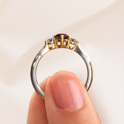 Dieser besondere Verlobungsring aus 14 Karat Weißgold mit 7x5 mm Granat heißt Lieselot PER. Für Sie gibt es nur eine Person in Ihrem Leben, die in einer Menschenmenge auffällt. Nur eine, die Ihr Herz höherschlagen lässt. Ein wahres Juwel! Sie verdient vor allem ein besonderes Geschenk. Ein einzigartiges, maßgefertigtes Schmuckstück, das allein zu ihren Ehren angefertigt wurde. Wir glauben, dass dieser Ring perfekt für Ihren besonderen Moment ist. Jedes Detail dieses exklusiven, Weißgold 3-stone Verlobungsring wird von Hand ausgewählt, bearbeitet und poliert - von unserem erfahrenen Juwelier in unserem eigenen Studio. Wir streben nach dem perfekten Design und der Zusammensetzung des Rings, damit er die einzigartigen Eigenschaften unserer Granat unterstreicht und sie noch heller erstrahlen lässt. Es braucht viel Präzision, aber am Ende zahlt es sich wegen der Schönheit des Rings aus. Und das ist unser Hauptziel. Das ist es, was uns begeistert. Das Besondere an unserem Konfigurator ist dass Sie selbst einem Schmuckstück zusammenstellen können zu einem eigenen persönlichen Schmuckstück. Dieser 3-stone Verlobungsring ist gefertigt in der Edelmetall Kombination Weißgold mit Gold, aber Sie können also auch wählen aus anderen Farben. Jedes Schmuckstück wird hergestellt mit Leidenschaft und Liebe, von einem unserer Meister-Goldschmiede.. Haben Sie ein bestimmtes Budget? Sie können uns gerne kontaktieren, damit wir Ihre Optionen besprechen können. Wir bieten unsere Verlobungsringe zum garantiert besten Preis, denn wir fertigen sie auf Bestellung. Solche Preise finden Sie nirgendwo anders!Verschiedene Arten von neuen Ringen werden täglich von unserem Team angefertigt. Vielleicht haben Sie irgendwo einen 3-stone Verlobungsring gefunden. Einen, den Sie Ihrem Liebsten schenken möchten. Bitte zögern Sie nicht, unseren Schmuckdesignern Ihre Gedanken und Ihr Design zu zeigen. Wir würden gerne Ihr Design in einen modische Verlobungsring verwandeln. Sie können die Entwicklungen Ihres Ringdesigns verfolgen, da wir sehr detaillierte 3D-Zeichnungen verwenden. Darüber hinaus können Sie einen Dummy des Designs bestellen. Ein Dummy ist ein Kunststoffring, der nach Ihrem Ringdesign gestaltet werden kann. Sie können ihn anprobieren und prüfen, ob der Verlobungsring Ihren Vorstellungen entspricht. Wir senden Ihnen gerne ein unverbindliches Angebot zu einem fairen Preis/Leistungsverhältnis. Das Angebot wird Sie angesichts der Qualität des Rings und der Edelsteine verblüffen.Um es einfacher zu machen, bieten wir eine kostenlose 30-tägige Rücksendung.