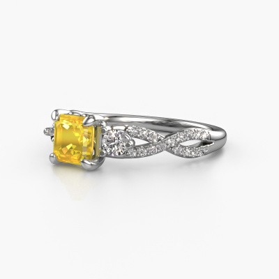 Dieser verdreht Verlobungsring aus 14 Karat Weißgold heißt Marilou ASC und hat 5.5 mm Gelb Saphir. Ist Ihre Freundin von Vintage begeistert? Dann wird dieser Weißgold Verlobungsring sicherlich perfekt zu ihrem Stil passen. Ein trendiger Ring mit einem Hauch von klassischem Schmuck. Ein wirklich atemberaubendes, romantisches Design! Vor allem, wenn Sie den Ring nach ihren Wünschen anpassen. Dieser Luxus 3-stone Verlobungsring ist mit atemberaubenden Gelb Saphir besetzt. Wie Sie sehen können, sind Sie der Boss bei der Auswahl des Edelsteins, der am besten zu Ihrer Freundin passt. Jeder Edelstein wird sorgfältig von unseren Händlern ausgewählt, die auf der ganzen Welt verteilt sind. Nichts als die besten Edelsteine für unseren erfahrenen Juwelier! Schließlich ist es seine Krönung! Jedes Schmuckstück wird von unseren Meister-Goldschmieden in unserem eigenen Studio für Sie gefertigt.Durch die Kombination modernster Technik mit uralter Handwerkskunst können wir alle Verlobungsringe in unserem eigenen Studio anfertigen. Jedes Schmuckstück wird auf Anfrage gefertigt. Das ist vorteilhaft, weil wir Ihnen dadurch einen Preis anbieten können, den Sie nirgendwo anders finden.Unsere Designer und Goldschmiede arbeiten jeden Tag zusammen und versuchen, neue Schmuckstücke zu kreieren. Vielleicht haben Sie irgendwo einen schönen, Luxus Verlobungsring gefunden, nach dem Ihr einzigartiger Ring gestaltet werden kann. Setzen Sie sich mit uns in Verbindung. Wir machen Ihnen ein Angebot, basierend auf einem fairen Preis/Leistungsverhältnis, das Sie begeistern wird.Um es einfacher zu machen, bieten wir eine kostenlose 30-tägige Rücksendung.