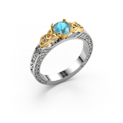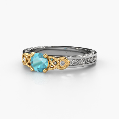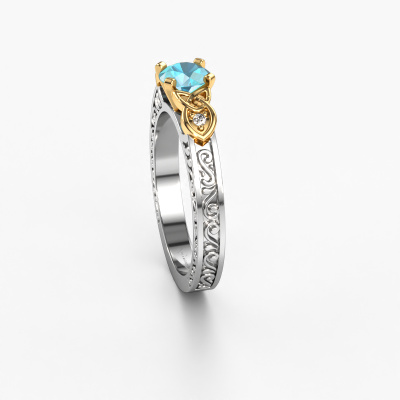 Dieser ajour Verlobungsring aus 14 Karat Weißgold heißt Gillian und hat 5 mm Blau Topas. Ist Ihre Freundin von Vintage begeistert? Dann wird dieser Weißgold Verlobungsring sicherlich perfekt zu ihrem Stil passen. Ein trendiger Ring mit einem Hauch von klassischem Schmuck. Ein wirklich atemberaubendes, romantisches Design! Vor allem, wenn Sie den Ring nach ihren Wünschen anpassen. Dieser Vintage 3-stone Verlobungsring ist mit atemberaubenden Blaue Topas besetzt. Wie Sie sehen können, sind Sie der Boss bei der Auswahl des Edelsteins, der am besten zu Ihrer Freundin passt. Jeder Edelstein wird sorgfältig von unseren Händlern ausgewählt, die auf der ganzen Welt verteilt sind. Nichts als die besten Edelsteine für unseren erfahrenen Juwelier! Schließlich ist es seine Krönung! Jedes Schmuckstück wird nur für Sie persönlich hergestellt, mit Liebe zum Detail und Design.Nach Erhalt Ihrer Bestellung beginnen unsere Goldschmiede mit Leidenschaft den kreativen Prozess und fertigen Ihren Verlobungsring in unserem eigenen Studio. Da wir keine großen Lager haben, werden diese Kosten nicht an Sie weitergegeben. Unsere Preisgestaltung ist der Beweis dafür! Wir bieten Schmuck zum niedrigsten Preis, garantiert.Verschiedene Arten von neuen Ringen werden täglich von unserem Team angefertigt. Vielleicht haben Sie irgendwo einen 3-stone Verlobungsring gefunden. Einen, den Sie Ihrem Liebsten schenken möchten. Bitte zögern Sie nicht, unseren Schmuckdesignern Ihre Gedanken und Ihr Design zu zeigen. Wir würden gerne Ihr Design in einen Vintage Verlobungsring verwandeln. Sie können die Entwicklungen Ihres Ringdesigns verfolgen, da wir sehr detaillierte 3D-Zeichnungen verwenden. Darüber hinaus können Sie einen Dummy des Designs bestellen. Ein Dummy ist ein Kunststoffring, der nach Ihrem Ringdesign gestaltet werden kann. Sie können ihn anprobieren und prüfen, ob der Verlobungsring Ihren Vorstellungen entspricht. Wir senden Ihnen gerne ein unverbindliches Angebot zu einem fairen Preis/Leistungsverhältnis. Das Angebot wird Sie angesichts der Qualität des Rings und der Edelsteine verblüffen.Um es einfacher zu machen, bieten wir eine kostenlose 30-tägige Rücksendung.