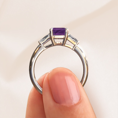 Dieser Verlobungsring aus Platin heißt Kina EME. Wie würden Sie den Stil der Liebe Ihres Lebens beschreiben? Hat sie einen einzigartigen Sinn für Stil? Diese umwerfende, besondere Platin Verlobungsring mit 8x6 mm Amethyst kann nach Ihren Wünschen angefertigt werden. Unsere Amethysten wurden sorgfältig ausgewählt. Denn wir denken, dass Ihr Verlobungsring nur mit dem schönsten Edelstein gekrönt werden darf. Sehen Sie das auch so? Jedes Schmuckstück wird hergestellt von einem Team leidenschaftlicher Goldschmiede und Schmuckdesigner. Das wird Ihr Kronjuwel unbedingt zu einem Blickfang machen.Haben Sie ein bestimmtes Budget? Sie können uns gerne kontaktieren, damit wir Ihre Optionen besprechen können. Wir bieten unsere Verlobungsringe zum garantiert besten Preis, denn wir fertigen sie auf Bestellung. Solche Preise finden Sie nirgendwo anders!Haben Sie irgendwo einen bestimmten Verlobungsring gefunden, den Sie Ihrem Liebsten schenken möchten? Sie können uns gerne sagen, was Sie wollen und wir werden Ihr Design in einen Einzigartigen exklusive Verlobungsring verwandeln. Sie können die Entwicklungen Ihres Ringdesigns verfolgen, da wir 3D-Zeichnungen verwenden. Das gibt Ihnen eine realistische Vorschau, wie Ihr Design aussehen wird. Sie können auch einen Dummy vorbestellen. Ein Dummy ist ein Kunststoffring, der nach Ihrem Ringdesign gestaltet werden kann. Sie können ihn anprobieren und prüfen, ob seine Breite und Größe für Sie geeignet sind. Wir senden Ihnen gerne ein unverbindliches Angebot zu einem fairen Preis/Leistungsverhältnis. Sie werden in Anbetracht der Qualität des Rings und der Edelsteine überrascht sein.Um es einfacher zu machen, bieten wir eine kostenlose 30-tägige Rücksendung.