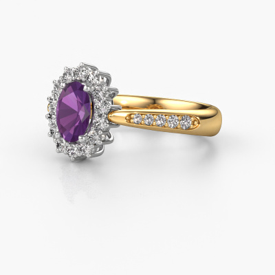 Der oben gezeigte Verlobungsring wird Margien 2 genannt. Wir nennen das einen Lady Diana Ring. Mit einem Lady Diana Verlobungsring ist der größere, zentrale Edelstein von kleineren Seitensteinen umgeben. Dieser Ring aus 14 Karat Gold ist besetzt mit einem 7x5 mm oval Amethyst, umgeben von kleineren Diamanten als Seitensteinen. Sie kennen wahrscheinlich diesen außergewöhnlichen, traditionell Gold Lady Diana Ring. Es ist der berühmteste Verlobungsring der Welt. Ausschließlich für die bemerkenswerteste Person in Ihrem Leben bestimmt! Ein wirklich atemberaubender Aspekt dieses speziellen Lady Diana Rings ist sein zentraler Amethyst. Die kleineren Seitensteine, die den Amethyst umfassen, betonen den Glanz des mittleren Edelsteins. Dadurch sieht es so aus, als ob sie zu einem großen Edelstein verschmelzen. Aufgrund seines Designs ist das bei Lady Di Ring noch deutlicher. Unsere erfahrenen Goldschmiede möchten einen einzigartigen Ring für Sie kreieren. Wir entwerfen unseren Ring in unserem eigenen Studio. Das macht es Ihnen leicht, den Ring nach Ihren Wünschen zu gestalten. Jedes Schmuckstück ist um Ihrem Finger Glanz zu verleihen. Jeder Ring wird von unseren Goldschmieden liebevoll von Hand gefertigt.Haben Sie ein bestimmtes Budget? Sie können uns gerne kontaktieren, damit wir Ihre Optionen besprechen können. Wir bieten unsere Verlobungsringe zum garantiert besten Preis, denn wir fertigen sie auf Bestellung. Solche Preise finden Sie nirgendwo anders!Unser Team fügt unserer Online-Kollektion täglich neue Designs hinzu. Unsere Designer und Goldschmiede arbeiten zusammen, um das beste Design zu kreieren. Wir bemühen uns, eine vielfältige Kollektion von Schmuckstücken anzubieten. Vielleicht haben Sie ein bestimmtes Design im Sinn. Eines, dass Sie irgendwo gesehen haben. Gerne geben wir Ihnen eine kostenlose Beratung. Wir machen Ihnen ein Angebot, basierend auf einem fairen Preis/Leistungsverhältnis, das Sie verblüffen wird.Um es einfacher zu machen, bieten wir eine kostenlose 30-tägige Rücksendung.