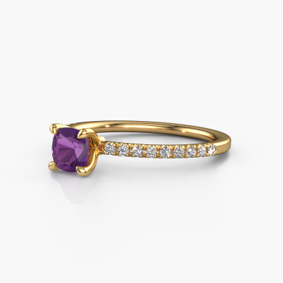 Der oben gezeigte Gold Verlobungsring wird Crystal CUS 2 genannt. Es ist ein Pavé Solitär Ring, da er einen zentralen Edelstein und ein Band mit Pavé-Fassung hat. Der klassische Pavé Solitär Verlobungsring ist in der Kombination 14 Karat Gold mit Gold und ist mit einem cussion 5 mm Amethyst-Mittelstein besetzt und das Band hat eine Pavé-Fassung mit Diamanten. Jedes Schmuckstück wird von unseren Meister-Goldschmieden in unserem eigenen Studio für Sie gefertigt. Um den zentralen Stein noch mehr zu betonen, hat das Band eine Pavé-Fassung mit weiteren Amethyst. Durch die offenen Krappen kann das Licht aus mehreren Winkeln auf den Amethyst treffen und der Amethyst-Ring funkelt noch mehr. Das obere Foto zeigt die leidenschaftlich handgefertigten Details des Rings. Die hohe Positionierung der Mittelstein ist ein echter Blickfang. Der perfekte Verlobungsring für das Kronjuwel Ihres Lebens!Nachdem Sie Ihre Bestellung aufgegeben haben, beginnen unsere Goldschmiede mit dem kreativen Prozess der Herstellung Ihres Crystal CUS 2 Verlobungsring. Wir haben keine Lager. Das ist vorteilhaft, da diese Kosten nicht an Sie weitergegeben werden. Daher sind wir in der Lage, Schmuck zu außergewöhnlich niedrigen Preisen anzubieten.Verschiedene Arten von neuen Ringen werden täglich von unserem Team angefertigt. Vielleicht haben Sie irgendwo einen Pavé Solitär Verlobungsring gefunden. Einen, den Sie Ihrem Liebsten schenken möchten. Bitte zögern Sie nicht, unseren Schmuckdesignern Ihre Gedanken und Ihr Design zu zeigen. Wir würden gerne Ihr Design in einen klassische Verlobungsring verwandeln. Sie können die Entwicklungen Ihres Ringdesigns verfolgen, da wir sehr detaillierte 3D-Zeichnungen verwenden. Darüber hinaus können Sie einen Dummy des Designs bestellen. Ein Dummy ist ein Kunststoffring, der nach Ihrem Ringdesign gestaltet werden kann. Sie können ihn anprobieren und prüfen, ob der Verlobungsring Ihren Vorstellungen entspricht. Wir senden Ihnen gerne ein unverbindliches Angebot zu einem fairen Preis/Leistungsverhältnis. Das Angebot wird Sie angesichts der Qualität des Rings und der Edelsteine verblüffen.Um es einfacher zu machen, bieten wir eine kostenlose 30-tägige Rücksendung.