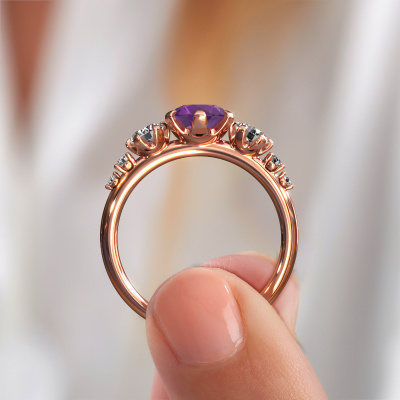 Dieser Verlobungsring aus 14 Karat Roségold heißt Aniek RND. Wie würden Sie den Stil der Liebe Ihres Lebens beschreiben? Hat sie einen einzigartigen Sinn für Stil? Diese umwerfende, zierliche Roségold Verlobungsring mit 6.5 mm Amethyst kann nach Ihren Wünschen angefertigt werden. Unsere Amethysten wurden sorgfältig ausgewählt. Denn wir denken, dass Ihr Verlobungsring nur mit dem schönsten Edelstein gekrönt werden darf. Sehen Sie das auch so? Jedes Schmuckstück wird von unseren Meister-Goldschmieden in unserem eigenen Studio für Sie gefertigt.Haben Sie ein bestimmtes Budget? Sie können uns gerne kontaktieren, damit wir Ihre Optionen besprechen können. Wir bieten unsere Verlobungsringe zum garantiert besten Preis, denn wir fertigen sie auf Bestellung. Solche Preise finden Sie nirgendwo anders!Haben Sie irgendwo einen bestimmten Verlobungsring gefunden, den Sie Ihrem Liebsten schenken möchten? Sie können uns gerne sagen, was Sie wollen und wir werden Ihr Design in einen Einzigartigen Fantasie Verlobungsring verwandeln. Sie können die Entwicklungen Ihres Ringdesigns verfolgen, da wir 3D-Zeichnungen verwenden. Das gibt Ihnen eine realistische Vorschau, wie Ihr Design aussehen wird. Sie können auch einen Dummy vorbestellen. Ein Dummy ist ein Kunststoffring, der nach Ihrem Ringdesign gestaltet werden kann. Sie können ihn anprobieren und prüfen, ob seine Breite und Größe für Sie geeignet sind. Wir senden Ihnen gerne ein unverbindliches Angebot zu einem fairen Preis/Leistungsverhältnis. Sie werden in Anbetracht der Qualität des Rings und der Edelsteine überrascht sein.Um es einfacher zu machen, bieten wir eine kostenlose 30-tägige Rücksendung.