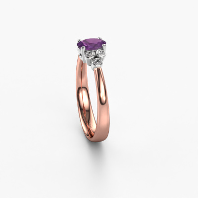 Dieser Verlobungsring aus 14 Karat Roségold heißt Lucy 1. Wie würden Sie den Stil der Liebe Ihres Lebens beschreiben? Hat sie einen einzigartigen Sinn für Stil? Diese umwerfende, schicke Roségold Verlobungsring mit 6x4 mm Amethyst kann nach Ihren Wünschen angefertigt werden. Unsere Amethysten wurden sorgfältig ausgewählt. Denn wir denken, dass Ihr Verlobungsring nur mit dem schönsten Edelstein gekrönt werden darf. Sehen Sie das auch so? Jedes Schmuckstück ist um Ihrem Finger Glanz zu verleihen. Jeder Ring wird von unseren Goldschmieden liebevoll von Hand gefertigt.Da wir unsere eigenen Ringe entwerfen und liefern, können wir Ihnen einen Verlobungsring zu einem Preis anbieten, den Sie nirgendwo anders finden. Ein Ring wird auf Bestellung angefertigt, wodurch kein überschüssiges Material anfällt. So können wir Ihnen ein gutes Angebot zum besten Preis machen. Wir verstehen, dass es sich riskant anfühlt, Ihren Verlobungsring online zu kaufen. Jedoch helfen wir Ihnen gerne beim Designprozess unter Berücksichtigung Ihres Budgets.Unser Team fügt unserer Online-Kollektion täglich neue Designs hinzu. Unsere Designer und Goldschmiede arbeiten zusammen, um das beste Design zu kreieren. Wir bemühen uns, eine vielfältige Kollektion von Schmuckstücken anzubieten. Vielleicht haben Sie ein bestimmtes Design im Sinn. Eines, dass Sie irgendwo gesehen haben. Gerne geben wir Ihnen eine kostenlose Beratung. Wir machen Ihnen ein Angebot, basierend auf einem fairen Preis/Leistungsverhältnis, das Sie verblüffen wird.Um es einfacher zu machen, bieten wir eine kostenlose 30-tägige Rücksendung.
