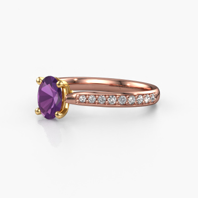 Der oben gezeigte Verlobungsring wird Mignon ovl 2 genannt. Wir nennen das einen Solitär-Ring, denn er hat einen einzelnen Edelstein. Es ist ein 14 Karat Roségold ring, mit 7x5 mm oval Amethyst. Das Besondere an unserem Konfigurator ist dass Sie selbst einem Schmuckstück zusammenstellen können zu einem eigenen persönlichen Schmuckstück. Dieser Solitäre Verlobungsring ist gefertigt in der Edelmetall Kombination Roségold mit Gold, aber Sie können also auch wählen aus anderen Farben. Jedes Schmuckstück wird hergestellt mit Leidenschaft und Liebe, von einem unserer Meister-Goldschmiede. Der Solitär-Verlobungsring ist eine Sonderform des Verlobungsring. Seine offenen Krappen ermöglichen, dass Licht aus mehr Winkeln auf den Edelstein trifft. Dieser schicke Verlobungsring ist durch die hohe Positionierung des Edelsteins ein atemberaubender Blickfang. Wir schmücken diesen Solitär-Ring sorgfältig von Hand, damit Sie Ihren Anfrage mit einem einzigartigen Ring würdigen können. Die Liebe Ihres Lebens verdient nur das Beste. Nach Erhalt Ihrer Bestellung beginnen unsere Goldschmiede mit Leidenschaft den kreativen Prozess und fertigen Ihren Verlobungsring in unserem eigenen Studio. Da wir keine großen Lager haben, werden diese Kosten nicht an Sie weitergegeben. Unsere Preisgestaltung ist der Beweis dafür! Wir bieten Schmuck zum niedrigsten Preis, garantiert.Unser Team fügt unserer Online-Kollektion täglich neue Designs hinzu. Unsere Designer und Goldschmiede arbeiten zusammen, um das beste Design zu kreieren. Wir bemühen uns, eine vielfältige Kollektion von Schmuckstücken anzubieten. Vielleicht haben Sie ein bestimmtes Design im Sinn. Eines, dass Sie irgendwo gesehen haben. Gerne geben wir Ihnen eine kostenlose Beratung. Wir machen Ihnen ein Angebot, basierend auf einem fairen Preis/Leistungsverhältnis, das Sie verblüffen wird.Um es einfacher zu machen, bieten wir eine kostenlose 30-tägige Rücksendung.