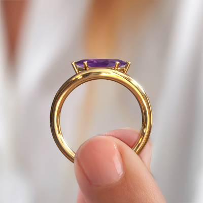 Dieser Verlobungsring aus 14 Karat Gold mit 11x5.5 mm Amethyst heißt Floor MRQ. Was macht Ihre Beziehung einzigartig? Was hat sie an sich, was Sie dazu bringt, auf die Knie zu fallen? Die einzigartige Verbindung zwischen Ihnen beiden wird durch