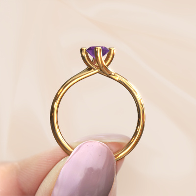 In Ihren Augen ist keine andere so wie sie. Sie ist genau die Eine, anders als alle anderen und rein... Diese Qualitäten werden von unserem moderne Gold Solitär Amethyst Verlobungsring perfekt unterstrichen. Dieser Amethyst wird von unseren leidenschaftlichen Juwelieren sorgfältig ausgewählt. Er entspricht den einzigartigen Qualitäten der Liebe Ihres Lebens. Es gibt keinen besseren Weg, als dieses Symbol der wahren Liebe, um Ihren Antrag zu würdigen. Der oben gezeigte Ring wird Dewi Oval genannt. Wir nennen das einen Solitär-Ring, weil er einen einzigen Edelstein hat. Es ist ein 14 Karat Gold ring, mit 7x5 mm oval Amethyst. Jedes Schmuckstück wird hergestellt mit Leidenschaft und Liebe, von einem unserer Meister-Goldschmiede.Haben Sie ein bestimmtes Budget? Sie können uns gerne kontaktieren, damit wir Ihre Optionen besprechen können. Wir bieten unsere Verlobungsringe zum garantiert besten Preis, denn wir fertigen sie auf Bestellung. Solche Preise finden Sie nirgendwo anders!Haben Sie einen bestimmten Ring im Sinn? Eines, dass Sie irgendwo gesehen haben. Bitte zögern Sie nicht, uns zu sagen, was Sie wollen und wir werden Ihr Design in einen Einzigartigen Verlobungsring verwandeln. Sie können die Entwicklungen Ihres Ringdesigns verfolgen, da wir 3D-Zeichnungen verwenden. Das gibt Ihnen eine realistische Vorschau Ihres Designs. Wir senden Ihnen gerne ein unverbindliches Angebot zu einem fairen Preis/Leistungsverhältnis. Es wird Sie erstaunen.Um es einfacher zu machen, bieten wir eine kostenlose 30-tägige Rücksendung.