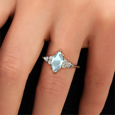 Dieser Verlobungsring aus 14 Karat Gold mit 11x5.5 mm Aquamarin heißt Melani MRQ. Was macht Ihre Beziehung einzigartig? Was hat sie an sich, was Sie dazu bringt, auf die Knie zu fallen? Die einzigartige Verbindung zwischen Ihnen beiden wird durch einen ebenso einzigartigen Ring unterstrichen. Ein einzigartiger Cluster Verlobungsring, der nur für sie gemacht wurde. Deshalb passt dieser Ring wie angegossen. Jedes einzelne Detail dieses graziöse, Gold Aquamarin Verlobungsring wird von unserem erfahrenen Goldschmieden in unserem eigenen Studio von Hand ausgesucht, bearbeitet und poliert. Das Endprodukt ist ein exquisiter Ring, einzigartig und bis zur Perfektion gebracht. Danach streben unsere erfahrenen Juweliere. Jedes Schmuckstück wird nur für Sie persönlich hergestellt, mit Liebe zum Detail und Design.Nach Erhalt Ihrer Bestellung beginnen unsere Goldschmiede mit Leidenschaft den kreativen Prozess und fertigen Ihren Verlobungsring in unserem eigenen Studio. Da wir keine großen Lager haben, werden diese Kosten nicht an Sie weitergegeben. Unsere Preisgestaltung ist der Beweis dafür! Wir bieten Schmuck zum niedrigsten Preis, garantiert.Haben Sie einen bestimmten Ring im Sinn? Eines, dass Sie irgendwo gesehen haben. Bitte zögern Sie nicht, uns zu sagen, was Sie wollen und wir werden Ihr Design in einen Einzigartigen Verlobungsring verwandeln. Sie können die Entwicklungen Ihres Ringdesigns verfolgen, da wir 3D-Zeichnungen verwenden. Das gibt Ihnen eine realistische Vorschau Ihres Designs. Wir senden Ihnen gerne ein unverbindliches Angebot zu einem fairen Preis/Leistungsverhältnis. Es wird Sie erstaunen.Um es einfacher zu machen, bieten wir eine kostenlose 30-tägige Rücksendung.