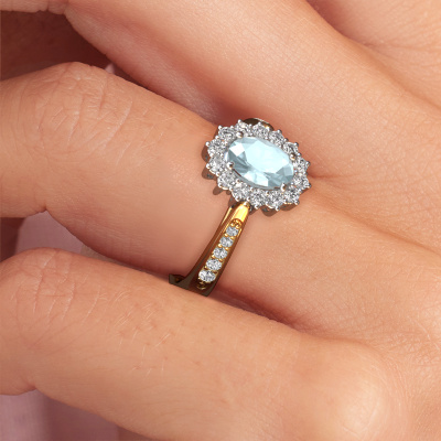 Der oben gezeigte Verlobungsring wird Margien 2 genannt. Wir nennen das einen Lady Diana Ring. Mit einem Lady Diana Verlobungsring ist der größere, zentrale Edelstein von kleineren Seitensteinen umgeben. Dieser Ring aus 14 Karat Gold ist besetzt mit einem 7x5 mm oval Aquamarin, umgeben von kleineren Diamanten als Seitensteinen. Sie kennen wahrscheinlich diesen außergewöhnlichen, traditionell Gold Lady Diana Ring. Es ist der berühmteste Verlobungsring der Welt. Ausschließlich für die bemerkenswerteste Person in Ihrem Leben bestimmt! Ein wirklich atemberaubender Aspekt dieses speziellen Lady Diana Rings ist sein zentraler Aquamarin. Die kleineren Seitensteine, die den Aquamarin umfassen, betonen den Glanz des mittleren Edelsteins. Dadurch sieht es so aus, als ob sie zu einem großen Edelstein verschmelzen. Aufgrund seines Designs ist das bei Lady Di Ring noch deutlicher. Unsere erfahrenen Goldschmiede möchten einen einzigartigen Ring für Sie kreieren. Wir entwerfen unseren Ring in unserem eigenen Studio. Das macht es Ihnen leicht, den Ring nach Ihren Wünschen zu gestalten. Jedes Schmuckstück ist um Ihrem Finger Glanz zu verleihen. Jeder Ring wird von unseren Goldschmieden liebevoll von Hand gefertigt.Haben Sie ein bestimmtes Budget? Sie können uns gerne kontaktieren, damit wir Ihre Optionen besprechen können. Wir bieten unsere Verlobungsringe zum garantiert besten Preis, denn wir fertigen sie auf Bestellung. Solche Preise finden Sie nirgendwo anders!Unser Team fügt unserer Online-Kollektion täglich neue Designs hinzu. Unsere Designer und Goldschmiede arbeiten zusammen, um das beste Design zu kreieren. Wir bemühen uns, eine vielfältige Kollektion von Schmuckstücken anzubieten. Vielleicht haben Sie ein bestimmtes Design im Sinn. Eines, dass Sie irgendwo gesehen haben. Gerne geben wir Ihnen eine kostenlose Beratung. Wir machen Ihnen ein Angebot, basierend auf einem fairen Preis/Leistungsverhältnis, das Sie verblüffen wird.Um es einfacher zu machen, bieten wir eine kostenlose 30-tägige Rücksendung.