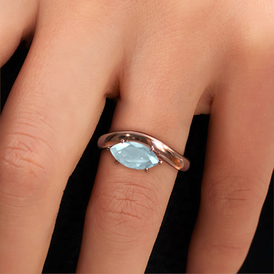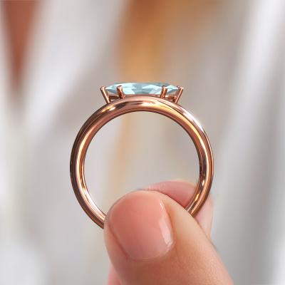 Dieser Verlobungsring aus 14 Karat Roségold mit 11x5.5 mm Aquamarin heißt Floor MRQ. Was macht Ihre Beziehung einzigartig? Was hat sie an sich, was Sie dazu bringt, auf die Knie zu fallen? Die einzigartige Verbindung zwischen Ihnen beiden wird