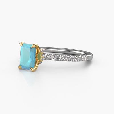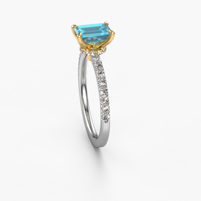 Der oben gezeigte Weißgold Verlobungsring wird Crystal EME 4 genannt. Es ist ein Pavé Solitär Ring, da er einen zentralen Edelstein und ein Band mit Pavé-Fassung hat. Der modische Pavé Solitär Verlobungsring ist in der Kombination 14 Karat Weißgold mit Gold und ist mit einem smaragd schliff 7x5 mm Blau Topas-Mittelstein besetzt und das Band hat eine Pavé-Fassung mit Lab grown Diamant. Jedes Schmuckstück ist um Ihrem Finger Glanz zu verleihen. Jeder Ring wird von unseren Goldschmieden liebevoll von Hand gefertigt. Um den zentralen Stein noch mehr zu betonen, hat das Band eine Pavé-Fassung mit weiteren Blau Topas. Durch die offenen Krappen kann das Licht aus mehreren Winkeln auf den Blau Topas treffen und der Blau Topas-Ring funkelt noch mehr. Das obere Foto zeigt die leidenschaftlich handgefertigten Details des Rings. Die hohe Positionierung der Mittelstein ist ein echter Blickfang. Der perfekte Verlobungsring für das Kronjuwel Ihres Lebens!Nach Erhalt Ihrer Bestellung beginnen unsere Goldschmiede mit Leidenschaft den kreativen Prozess und fertigen Ihren Verlobungsring in unserem eigenen Studio. Da wir keine großen Lager haben, werden diese Kosten nicht an Sie weitergegeben. Unsere Preisgestaltung ist der Beweis dafür! Wir bieten Schmuck zum niedrigsten Preis, garantiert.Unser Team fügt unserer Online-Kollektion täglich neue Designs hinzu. Unsere Designer und Goldschmiede arbeiten zusammen, um das beste Design zu kreieren. Wir bemühen uns, eine vielfältige Kollektion von Schmuckstücken anzubieten. Vielleicht haben Sie ein bestimmtes Design im Sinn. Eines, dass Sie irgendwo gesehen haben. Gerne geben wir Ihnen eine kostenlose Beratung. Wir machen Ihnen ein Angebot, basierend auf einem fairen Preis/Leistungsverhältnis, das Sie verblüffen wird.Um es einfacher zu machen, bieten wir eine kostenlose 30-tägige Rücksendung.
