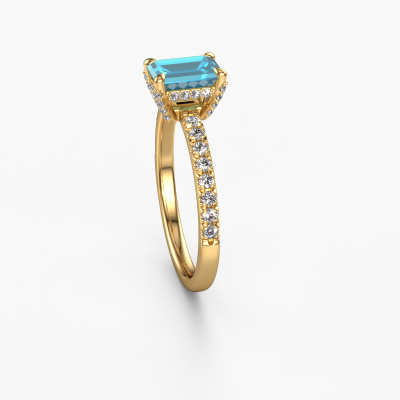 Der oben gezeigte Verlobungsring wird Saskia eme 1 genannt. Wir nennen das einen Solitär-Ring, denn er hat einen einzelnen Edelstein. Es ist ein 14 Karat Gold ring, mit 7x5 mm smaragd schliff Blau Topas. Das Besondere an unserem Konfigurator ist dass Sie selbst einem Schmuckstück zusammenstellen können zu einem eigenen persönlichen Schmuckstück. Dieser Solitäre Verlobungsring ist gefertigt in der Edelmetall Kombination Gold mit Gold, aber Sie können also auch wählen aus anderen Farben. Jedes Schmuckstück wird hergestellt mit Leidenschaft und Liebe, von einem unserer Meister-Goldschmiede. Der Solitär-Verlobungsring ist eine Sonderform des Verlobungsring. Seine offenen Krappen ermöglichen, dass Licht aus mehr Winkeln auf den Edelstein trifft. Dieser exklusive Verlobungsring ist durch die hohe Positionierung des Edelsteins ein atemberaubender Blickfang. Wir schmücken diesen Solitär-Ring sorgfältig von Hand, damit Sie Ihren Anfrage mit einem einzigartigen Ring würdigen können. Die Liebe Ihres Lebens verdient nur das Beste. Nach Erhalt Ihrer Bestellung beginnen unsere Goldschmiede mit Leidenschaft den kreativen Prozess und fertigen Ihren Verlobungsring in unserem eigenen Studio. Da wir keine großen Lager haben, werden diese Kosten nicht an Sie weitergegeben. Unsere Preisgestaltung ist der Beweis dafür! Wir bieten Schmuck zum niedrigsten Preis, garantiert.Unser Team fügt unserer Online-Kollektion täglich neue Designs hinzu. Unsere Designer und Goldschmiede arbeiten zusammen, um das beste Design zu kreieren. Wir bemühen uns, eine vielfältige Kollektion von Schmuckstücken anzubieten. Vielleicht haben Sie ein bestimmtes Design im Sinn. Eines, dass Sie irgendwo gesehen haben. Gerne geben wir Ihnen eine kostenlose Beratung. Wir machen Ihnen ein Angebot, basierend auf einem fairen Preis/Leistungsverhältnis, das Sie verblüffen wird.Um es einfacher zu machen, bieten wir eine kostenlose 30-tägige Rücksendung.