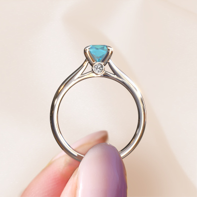 Der oben gezeigte Verlobungsring wird Valorie cus 1 genannt. Wir nennen das einen Solitär-Ring, denn er hat einen einzelnen Edelstein. Es ist ein Platin ring, mit 6 mm cussion Blau Topas. Das Besondere an unserem Konfigurator ist dass Sie selbst einem Schmuckstück zusammenstellen können zu einem eigenen persönlichen Schmuckstück. Dieser Solitäre Verlobungsring ist gefertigt in der Edelmetall Kombination Platin mit Platin, aber Sie können also auch wählen aus anderen Farben. Jedes Schmuckstück lässt Ihren Finger erstrahlen. Ihr Ring ist mit Liebe von unseren Goldschmieden handgefertigt. Der Solitär-Verlobungsring ist eine Sonderform des Verlobungsring. Seine offenen Krappen ermöglichen, dass Licht aus mehr Winkeln auf den Edelstein trifft. Dieser klassische Verlobungsring ist durch die hohe Positionierung des Edelsteins ein atemberaubender Blickfang. Wir schmücken diesen Solitär-Ring sorgfältig von Hand, damit Sie Ihren Anfrage mit einem einzigartigen Ring würdigen können. Die Liebe Ihres Lebens verdient nur das Beste. Haben Sie ein bestimmtes Budget? Sie können uns gerne kontaktieren, damit wir Ihre Optionen besprechen können. Wir bieten unsere Verlobungsringe zum garantiert besten Preis, denn wir fertigen sie auf Bestellung. Solche Preise finden Sie nirgendwo anders!Haben Sie irgendwo einen bestimmten Verlobungsring gefunden, den Sie Ihrem Liebsten schenken möchten? Sie können uns gerne sagen, was Sie wollen und wir werden Ihr Design in einen Einzigartigen klassische Verlobungsring verwandeln. Sie können die Entwicklungen Ihres Ringdesigns verfolgen, da wir 3D-Zeichnungen verwenden. Das gibt Ihnen eine realistische Vorschau, wie Ihr Design aussehen wird. Sie können auch einen Dummy vorbestellen. Ein Dummy ist ein Kunststoffring, der nach Ihrem Ringdesign gestaltet werden kann. Sie können ihn anprobieren und prüfen, ob seine Breite und Größe für Sie geeignet sind. Wir senden Ihnen gerne ein unverbindliches Angebot zu einem fairen Preis/Leistungsverhältnis. Sie werden in Anbetracht der Qualität des Rings und der Edelsteine überrascht sein.Um es einfacher zu machen, bieten wir eine kostenlose 30-tägige Rücksendung.
