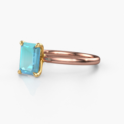 Der oben gezeigte Verlobungsring wird Crystal EME 1 genannt. Wir nennen das einen Solitär-Ring, denn er hat einen einzelnen Edelstein. Es ist ein 14 Karat Roségold ring, mit 8x6 mm smaragd schliff Blau Topas. Das Besondere an unserem Konfigurator ist dass Sie selbst einem Schmuckstück zusammenstellen können zu einem eigenen persönlichen Schmuckstück. Dieser Solitäre Verlobungsring ist gefertigt in der Edelmetall Kombination Roségold mit Gold, aber Sie können also auch wählen aus anderen Farben. Jedes Schmuckstück wird hergestellt mit Leidenschaft und Liebe, von einem unserer Meister-Goldschmiede. Der Solitär-Verlobungsring ist eine Sonderform des Verlobungsring. Seine offenen Krappen ermöglichen, dass Licht aus mehr Winkeln auf den Edelstein trifft. Dieser klassische Verlobungsring ist durch die hohe Positionierung des Edelsteins ein atemberaubender Blickfang. Wir schmücken diesen Solitär-Ring sorgfältig von Hand, damit Sie Ihren Anfrage mit einem einzigartigen Ring würdigen können. Die Liebe Ihres Lebens verdient nur das Beste. Nach Erhalt Ihrer Bestellung beginnen unsere Goldschmiede mit Leidenschaft den kreativen Prozess und fertigen Ihren Verlobungsring in unserem eigenen Studio. Da wir keine großen Lager haben, werden diese Kosten nicht an Sie weitergegeben. Unsere Preisgestaltung ist der Beweis dafür! Wir bieten Schmuck zum niedrigsten Preis, garantiert.Unsere Designer und Goldschmiede arbeiten jeden Tag zusammen und versuchen, neue Schmuckstücke zu kreieren. Vielleicht haben Sie irgendwo einen schönen, klassische Verlobungsring gefunden, nach dem Ihr einzigartiger Ring gestaltet werden kann. Setzen Sie sich mit uns in Verbindung. Wir machen Ihnen ein Angebot, basierend auf einem fairen Preis/Leistungsverhältnis, das Sie begeistern wird.Um es einfacher zu machen, bieten wir eine kostenlose 30-tägige Rücksendung.