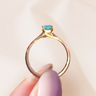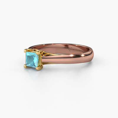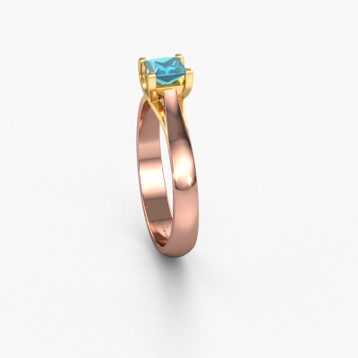 Der oben gezeigte Verlobungsring wird Mia Square genannt. Wir nennen das einen Solitär-Ring, denn er hat einen einzelnen Edelstein. Es ist ein 14 Karat Roségold ring, mit 4 mm princess Blau Topas. Das Besondere an unserem Konfigurator ist dass Sie selbst einem Schmuckstück zusammenstellen können zu einem eigenen persönlichen Schmuckstück. Dieser Solitäre Verlobungsring ist gefertigt in der Edelmetall Kombination Roségold mit Gold, aber Sie können also auch wählen aus anderen Farben. Jedes Schmuckstück wird hergestellt von einem Team leidenschaftlicher Goldschmiede und Schmuckdesigner. Das wird Ihr Kronjuwel unbedingt zu einem Blickfang machen. Der Solitär-Verlobungsring ist eine Sonderform des Verlobungsring. Seine offenen Krappen ermöglichen, dass Licht aus mehr Winkeln auf den Edelstein trifft. Dieser moderne Verlobungsring ist durch die hohe Positionierung des Edelsteins ein atemberaubender Blickfang. Wir schmücken diesen Solitär-Ring sorgfältig von Hand, damit Sie Ihren Anfrage mit einem einzigartigen Ring würdigen können. Die Liebe Ihres Lebens verdient nur das Beste. Mit unserer modernen Technik können wir Schmuckstücke von höchster Qualität mit größter Sorgfalt für Sie entwerfen und anpassen. Unsere Verlobungsringe sind immer um 30 Prozent günstiger als bei anderen Juwelieren. Wir fertigen Verlobungsringe auf Bestellung, also müssen wir keine großen Lager unterhalten. Wenn Sie ein bestimmtes Budget haben, beraten wir Sie gerne entsprechend.Haben Sie irgendwo einen bestimmten Verlobungsring gefunden, den Sie Ihrem Liebsten schenken möchten? Sie können uns gerne sagen, was Sie wollen und wir werden Ihr Design in einen Einzigartigen moderne Verlobungsring verwandeln. Sie können die Entwicklungen Ihres Ringdesigns verfolgen, da wir 3D-Zeichnungen verwenden. Das gibt Ihnen eine realistische Vorschau, wie Ihr Design aussehen wird. Sie können auch einen Dummy vorbestellen. Ein Dummy ist ein Kunststoffring, der nach Ihrem Ringdesign gestaltet werden kann. Sie können ihn anprobieren und prüfen, ob seine Breite und Größe für Sie geeignet sind. Wir senden Ihnen gerne ein unverbindliches Angebot zu einem fairen Preis/Leistungsverhältnis. Sie werden in Anbetracht der Qualität des Rings und der Edelsteine überrascht sein.Um es einfacher zu machen, bieten wir eine kostenlose 30-tägige Rücksendung.