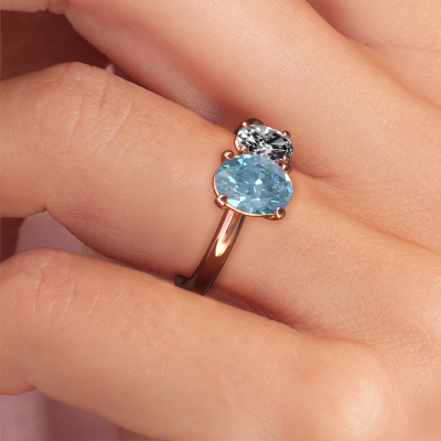 Dieser Verlobungsring aus 14 Karat Roségold heißt Toi et Moi OVL-OVL. Wie würden Sie den Stil der Liebe Ihres Lebens beschreiben? Hat sie einen einzigartigen Sinn für Stil? Diese umwerfende, hervorragende Roségold Verlobungsring mit 8x6 mm blauer Labordiamant kann nach Ihren Wünschen angefertigt werden. Unsere blauer Labordiamanten wurden sorgfältig ausgewählt. Denn wir denken, dass Ihr Verlobungsring nur mit dem schönsten Edelstein gekrönt werden darf. Sehen Sie das auch so? Jedes Schmuckstück wird hergestellt von einem Team leidenschaftlicher Goldschmiede und Schmuckdesigner. Das wird Ihr Kronjuwel unbedingt zu einem Blickfang machen.Nachdem Sie Ihre Bestellung aufgegeben haben, beginnen unsere Goldschmiede mit dem kreativen Prozess der Herstellung Ihres Toi et Moi OVL-OVL Verlobungsring. Wir haben keine Lager. Das ist vorteilhaft, da diese Kosten nicht an Sie weitergegeben werden. Daher sind wir in der Lage, Schmuck zu außergewöhnlich niedrigen Preisen anzubieten.Verschiedene Arten von neuen Ringen werden täglich von unserem Team angefertigt. Vielleicht haben Sie irgendwo einen 2-stone Verlobungsring gefunden. Einen, den Sie Ihrem Liebsten schenken möchten. Bitte zögern Sie nicht, unseren Schmuckdesignern Ihre Gedanken und Ihr Design zu zeigen. Wir würden gerne Ihr Design in einen moderne Verlobungsring verwandeln. Sie können die Entwicklungen Ihres Ringdesigns verfolgen, da wir sehr detaillierte 3D-Zeichnungen verwenden. Darüber hinaus können Sie einen Dummy des Designs bestellen. Ein Dummy ist ein Kunststoffring, der nach Ihrem Ringdesign gestaltet werden kann. Sie können ihn anprobieren und prüfen, ob der Verlobungsring Ihren Vorstellungen entspricht. Wir senden Ihnen gerne ein unverbindliches Angebot zu einem fairen Preis/Leistungsverhältnis. Das Angebot wird Sie angesichts der Qualität des Rings und der Edelsteine verblüffen.Um es einfacher zu machen, bieten wir eine kostenlose 30-tägige Rücksendung.