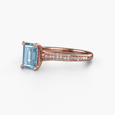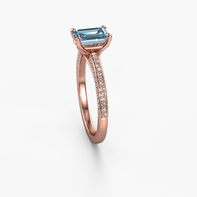 Der oben gezeigte Ring wird Elenore eme genannt. Es ist ein Pavé Solitär Ring, da er einen zentralen Edelstein und ein Band mit Pavé-Fassung hat. Dieser 14 Karat Roségold ring ist mit einem 7x5 mm smaragd schliff blauer Labordiamant-Mittelstein besetzt und das Band hat eine Pavé-Fassung mit Lab grown Diamant. Jedes Schmuckstück wird nur für Sie persönlich hergestellt, mit Liebe zum Detail und Design.Dieser exklusive Roségold Pavé Solitär Verlobungsring mit Pavé-Fassung hat einen exquisiten, smaragd schliff blauer Labordiamant als Mittelstein. Um den zentralen Stein noch mehr zu betonen, hat das Band eine Pavé-Fassung mit weiteren Lab grown Diamant. Durch die offenen Krappen kann das Licht aus mehreren Winkeln auf den blauer Labordiamant treffen und der blauer Labordiamant-Ring funkelt noch mehr. Das obere Foto zeigt die leidenschaftlich handgefertigten Details des Rings. Die hohe Positionierung der Mittelstein ist ein echter Blickfang. Der perfekte Verlobungsring für das Kronjuwel Ihres Lebens!Haben Sie ein bestimmtes Budget? Sie können uns gerne kontaktieren, damit wir Ihre Optionen besprechen können. Wir bieten unsere Verlobungsringe zum garantiert besten Preis, denn wir fertigen sie auf Bestellung. Solche Preise finden Sie nirgendwo anders!Haben Sie irgendwo einen bestimmten Verlobungsring gefunden, den Sie Ihrem Liebsten schenken möchten? Sie können uns gerne sagen, was Sie wollen und wir werden Ihr Design in einen Einzigartigen exklusive Verlobungsring verwandeln. Sie können die Entwicklungen Ihres Ringdesigns verfolgen, da wir 3D-Zeichnungen verwenden. Das gibt Ihnen eine realistische Vorschau, wie Ihr Design aussehen wird. Sie können auch einen Dummy vorbestellen. Ein Dummy ist ein Kunststoffring, der nach Ihrem Ringdesign gestaltet werden kann. Sie können ihn anprobieren und prüfen, ob seine Breite und Größe für Sie geeignet sind. Wir senden Ihnen gerne ein unverbindliches Angebot zu einem fairen Preis/Leistungsverhältnis. Sie werden in Anbetracht der Qualität des Rings und der Edelsteine überrascht sein.Um es einfacher zu machen, bieten wir eine kostenlose 30-tägige Rücksendung.