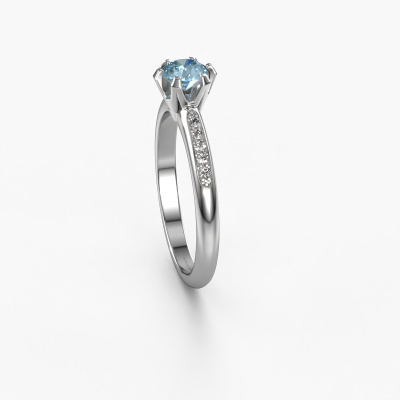 Der oben gezeigte Ring wird Tiffy 2 genannt. Es ist ein Pavé Solitär Ring, da er einen zentralen Edelstein und ein Band mit Pavé-Fassung hat. Dieser 14 Karat Weißgold ring ist mit einem 4.7 mm rund blauer Labordiamant-Mittelstein besetzt und das Band hat eine Pavé-Fassung mit Diamanten. Jedes Schmuckstück ist um Ihrem Finger Glanz zu verleihen. Jeder Ring wird von unseren Goldschmieden liebevoll von Hand gefertigt.Dieser traditionell Weißgold Pavé Solitär Verlobungsring mit Pavé-Fassung hat einen exquisiten, rund blauer Labordiamant als Mittelstein. Um den zentralen Stein noch mehr zu betonen, hat das Band eine Pavé-Fassung mit weiteren Diamanten. Durch die offenen Krappen kann das Licht aus mehreren Winkeln auf den blauer Labordiamant treffen und der blauer Labordiamant-Ring funkelt noch mehr. Das obere Foto zeigt die leidenschaftlich handgefertigten Details des Rings. Die hohe Positionierung der Mittelstein ist ein echter Blickfang. Der perfekte Verlobungsring für das Kronjuwel Ihres Lebens!