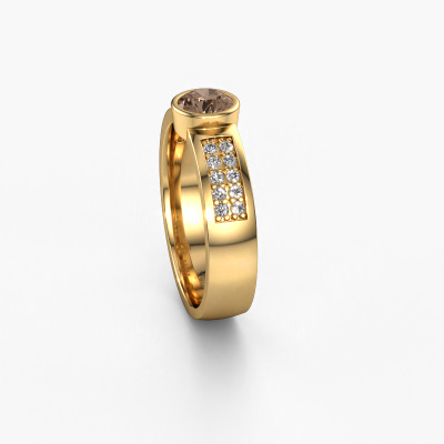 Der oben gezeigte Gold Verlobungsring wird Ise 3 genannt. Es ist ein Pavé Solitär Ring, da er einen zentralen Edelstein und ein Band mit Pavé-Fassung hat. Der moderne Pavé Solitär Verlobungsring ist in der Kombination 14 Karat Gold mit Gold und ist mit einem rund 0.40 crt Braun Diamant-Mittelstein besetzt und das Band hat eine Pavé-Fassung mit Diamanten. Jedes Schmuckstück wird von unseren Meister-Goldschmieden in unserem eigenen Studio für Sie gefertigt. Um den zentralen Stein noch mehr zu betonen, hat das Band eine Pavé-Fassung mit weiteren Braun Diamant. Durch die offenen Krappen kann das Licht aus mehreren Winkeln auf den Braun Diamant treffen und der Braun Diamant-Ring funkelt noch mehr. Das obere Foto zeigt die leidenschaftlich handgefertigten Details des Rings. Die hohe Positionierung der Mittelstein ist ein echter Blickfang. Der perfekte Verlobungsring für das Kronjuwel Ihres Lebens!Da wir unsere eigenen Ringe entwerfen und liefern, können wir Ihnen einen Verlobungsring zu einem Preis anbieten, den Sie nirgendwo anders finden. Ein Ring wird auf Bestellung angefertigt, wodurch kein überschüssiges Material anfällt. So können wir Ihnen ein gutes Angebot zum besten Preis machen. Wir verstehen, dass es sich riskant anfühlt, Ihren Verlobungsring online zu kaufen. Jedoch helfen wir Ihnen gerne beim Designprozess unter Berücksichtigung Ihres Budgets.Unser Team fügt unserer Online-Kollektion täglich neue Designs hinzu. Unsere Designer und Goldschmiede arbeiten zusammen, um das beste Design zu kreieren. Wir bemühen uns, eine vielfältige Kollektion von Schmuckstücken anzubieten. Vielleicht haben Sie ein bestimmtes Design im Sinn. Eines, dass Sie irgendwo gesehen haben. Gerne geben wir Ihnen eine kostenlose Beratung. Wir machen Ihnen ein Angebot, basierend auf einem fairen Preis/Leistungsverhältnis, das Sie verblüffen wird.Um es einfacher zu machen, bieten wir eine kostenlose 30-tägige Rücksendung.