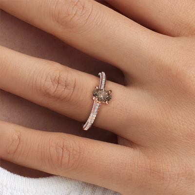 Der oben gezeigte Ring wird Elenore ovl genannt. Es ist ein Pavé Solitär Ring, da er einen zentralen Edelstein und ein Band mit Pavé-Fassung hat. Dieser 14 Karat Roségold ring ist mit einem 0.60 crt oval Braun Diamant-Mittelstein besetzt und das Band hat eine Pavé-Fassung mit Diamanten. Jedes Schmuckstück wird hergestellt von einem Team leidenschaftlicher Goldschmiede und Schmuckdesigner. Das wird Ihr Kronjuwel unbedingt zu einem Blickfang machen.Dieser exklusive Roségold Pavé Solitär Verlobungsring mit Pavé-Fassung hat einen exquisiten, oval Braun Diamant als Mittelstein. Um den zentralen Stein noch mehr zu betonen, hat das Band eine Pavé-Fassung mit weiteren Diamanten. Durch die offenen Krappen kann das Licht aus mehreren Winkeln auf den Braun Diamant treffen und der Braun Diamant-Ring funkelt noch mehr. Das obere Foto zeigt die leidenschaftlich handgefertigten Details des Rings. Die hohe Positionierung der Mittelstein ist ein echter Blickfang. Der perfekte Verlobungsring für das Kronjuwel Ihres Lebens!Nachdem Sie Ihre Bestellung aufgegeben haben, beginnen unsere Goldschmiede mit dem kreativen Prozess der Herstellung Ihres Elenore ovl Verlobungsring. Wir haben keine Lager. Das ist vorteilhaft, da diese Kosten nicht an Sie weitergegeben werden. Daher sind wir in der Lage, Schmuck zu außergewöhnlich niedrigen Preisen anzubieten.Haben Sie irgendwo einen bestimmten Verlobungsring gefunden, den Sie Ihrem Liebsten schenken möchten? Sie können uns gerne sagen, was Sie wollen und wir werden Ihr Design in einen Einzigartigen exklusive Verlobungsring verwandeln. Sie können die Entwicklungen Ihres Ringdesigns verfolgen, da wir 3D-Zeichnungen verwenden. Das gibt Ihnen eine realistische Vorschau, wie Ihr Design aussehen wird. Sie können auch einen Dummy vorbestellen. Ein Dummy ist ein Kunststoffring, der nach Ihrem Ringdesign gestaltet werden kann. Sie können ihn anprobieren und prüfen, ob seine Breite und Größe für Sie geeignet sind. Wir senden Ihnen gerne ein unverbindliches Angebot zu einem fairen Preis/Leistungsverhältnis. Sie werden in Anbetracht der Qualität des Rings und der Edelsteine überrascht sein.Um es einfacher zu machen, bieten wir eine kostenlose 30-tägige Rücksendung.