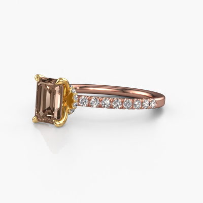 Der oben gezeigte Roségold Verlobungsring wird Crystal EME 4 genannt. Es ist ein Pavé Solitär Ring, da er einen zentralen Edelstein und ein Band mit Pavé-Fassung hat. Der modische Pavé Solitär Verlobungsring ist in der Kombination 14 Karat Roségold mit Gold und ist mit einem smaragd schliff 1.15 crt Braun Diamant-Mittelstein besetzt und das Band hat eine Pavé-Fassung mit Lab grown Diamant. Jedes Schmuckstück ist um Ihrem Finger Glanz zu verleihen. Jeder Ring wird von unseren Goldschmieden liebevoll von Hand gefertigt. Um den zentralen Stein noch mehr zu betonen, hat das Band eine Pavé-Fassung mit weiteren Braun Diamant. Durch die offenen Krappen kann das Licht aus mehreren Winkeln auf den Braun Diamant treffen und der Braun Diamant-Ring funkelt noch mehr. Das obere Foto zeigt die leidenschaftlich handgefertigten Details des Rings. Die hohe Positionierung der Mittelstein ist ein echter Blickfang. Der perfekte Verlobungsring für das Kronjuwel Ihres Lebens!Nach Erhalt Ihrer Bestellung beginnen unsere Goldschmiede mit Leidenschaft den kreativen Prozess und fertigen Ihren Verlobungsring in unserem eigenen Studio. Da wir keine großen Lager haben, werden diese Kosten nicht an Sie weitergegeben. Unsere Preisgestaltung ist der Beweis dafür! Wir bieten Schmuck zum niedrigsten Preis, garantiert.Unser Team fügt unserer Online-Kollektion täglich neue Designs hinzu. Unsere Designer und Goldschmiede arbeiten zusammen, um das beste Design zu kreieren. Wir bemühen uns, eine vielfältige Kollektion von Schmuckstücken anzubieten. Vielleicht haben Sie ein bestimmtes Design im Sinn. Eines, dass Sie irgendwo gesehen haben. Gerne geben wir Ihnen eine kostenlose Beratung. Wir machen Ihnen ein Angebot, basierend auf einem fairen Preis/Leistungsverhältnis, das Sie verblüffen wird.Um es einfacher zu machen, bieten wir eine kostenlose 30-tägige Rücksendung.