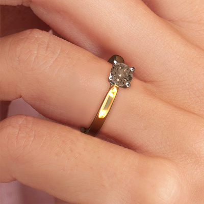Der oben gezeigte Verlobungsring wird Mignon rnd 1 genannt. Wir nennen das einen Solitär-Ring, denn er hat einen einzelnen Edelstein. Es ist ein 14 Karat Gold ring, mit 0.50 crt rund Braun Diamant. Das Besondere an unserem Konfigurator ist dass Sie selbst einem Schmuckstück zusammenstellen können zu einem eigenen persönlichen Schmuckstück. Dieser Solitäre Verlobungsring ist gefertigt in der Edelmetall Kombination Gold mit Weißgold, aber Sie können also auch wählen aus anderen Farben. Jedes Schmuckstück wird hergestellt mit Leidenschaft und Liebe, von einem unserer Meister-Goldschmiede. Der Solitär-Verlobungsring ist eine Sonderform des Verlobungsring. Seine offenen Krappen ermöglichen, dass Licht aus mehr Winkeln auf den Edelstein trifft. Dieser klassische Verlobungsring ist durch die hohe Positionierung des Edelsteins ein atemberaubender Blickfang. Wir schmücken diesen Solitär-Ring sorgfältig von Hand, damit Sie Ihren Anfrage mit einem einzigartigen Ring würdigen können. Die Liebe Ihres Lebens verdient nur das Beste. Nach Erhalt Ihrer Bestellung beginnen unsere Goldschmiede mit Leidenschaft den kreativen Prozess und fertigen Ihren Verlobungsring in unserem eigenen Studio. Da wir keine großen Lager haben, werden diese Kosten nicht an Sie weitergegeben. Unsere Preisgestaltung ist der Beweis dafür! Wir bieten Schmuck zum niedrigsten Preis, garantiert.Haben Sie irgendwo einen bestimmten Verlobungsring gefunden, den Sie Ihrem Liebsten schenken möchten? Sie können uns gerne sagen, was Sie wollen und wir werden Ihr Design in einen Einzigartigen klassische Verlobungsring verwandeln. Sie können die Entwicklungen Ihres Ringdesigns verfolgen, da wir 3D-Zeichnungen verwenden. Das gibt Ihnen eine realistische Vorschau, wie Ihr Design aussehen wird. Sie können auch einen Dummy vorbestellen. Ein Dummy ist ein Kunststoffring, der nach Ihrem Ringdesign gestaltet werden kann. Sie können ihn anprobieren und prüfen, ob seine Breite und Größe für Sie geeignet sind. Wir senden Ihnen gerne ein unverbindliches Angebot zu einem fairen Preis/Leistungsverhältnis. Sie werden in Anbetracht der Qualität des Rings und der Edelsteine überrascht sein.Um es einfacher zu machen, bieten wir eine kostenlose 30-tägige Rücksendung.