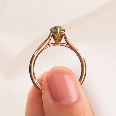 Der oben gezeigte Verlobungsring wird Mignon per 1 genannt. Wir nennen das einen Solitär-Ring, denn er hat einen einzelnen Edelstein. Es ist ein 14 Karat Roségold ring, mit 0.65 crt tropfen Braun Diamant. Das Besondere an unserem Konfigurator ist dass Sie selbst einem Schmuckstück zusammenstellen können zu einem eigenen persönlichen Schmuckstück. Dieser Solitäre Verlobungsring ist gefertigt in der Edelmetall Kombination Roségold mit Gold, aber Sie können also auch wählen aus anderen Farben. Jedes Schmuckstück ist um Ihrem Finger Glanz zu verleihen. Jeder Ring wird von unseren Goldschmieden liebevoll von Hand gefertigt. Der Solitär-Verlobungsring ist eine Sonderform des Verlobungsring. Seine offenen Krappen ermöglichen, dass Licht aus mehr Winkeln auf den Edelstein trifft. Dieser klassische Verlobungsring ist durch die hohe Positionierung des Edelsteins ein atemberaubender Blickfang. Wir schmücken diesen Solitär-Ring sorgfältig von Hand, damit Sie Ihren Anfrage mit einem einzigartigen Ring würdigen können. Die Liebe Ihres Lebens verdient nur das Beste. Nachdem Sie Ihre Bestellung aufgegeben haben, beginnen unsere Goldschmiede mit dem kreativen Prozess der Herstellung Ihres Mignon per 1 Verlobungsring. Wir haben keine Lager. Das ist vorteilhaft, da diese Kosten nicht an Sie weitergegeben werden. Daher sind wir in der Lage, Schmuck zu außergewöhnlich niedrigen Preisen anzubieten.Unser Team fügt unserer Online-Kollektion täglich neue Designs hinzu. Unsere Designer und Goldschmiede arbeiten zusammen, um das beste Design zu kreieren. Wir bemühen uns, eine vielfältige Kollektion von Schmuckstücken anzubieten. Vielleicht haben Sie ein bestimmtes Design im Sinn. Eines, dass Sie irgendwo gesehen haben. Gerne geben wir Ihnen eine kostenlose Beratung. Wir machen Ihnen ein Angebot, basierend auf einem fairen Preis/Leistungsverhältnis, das Sie verblüffen wird.Um es einfacher zu machen, bieten wir eine kostenlose 30-tägige Rücksendung.