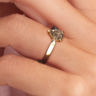 Der oben gezeigte Verlobungsring wird Mignon per 1 genannt. Wir nennen das einen Solitär-Ring, denn er hat einen einzelnen Edelstein. Es ist ein 14 Karat Weißgold ring, mit 0.65 crt tropfen Braun Diamant. Das Besondere an unserem Konfigurator ist dass Sie selbst einem Schmuckstück zusammenstellen können zu einem eigenen persönlichen Schmuckstück. Dieser Solitäre Verlobungsring ist gefertigt in der Edelmetall Kombination Weißgold mit Gold, aber Sie können also auch wählen aus anderen Farben. Jedes Schmuckstück ist um Ihrem Finger Glanz zu verleihen. Jeder Ring wird von unseren Goldschmieden liebevoll von Hand gefertigt. Der Solitär-Verlobungsring ist eine Sonderform des Verlobungsring. Seine offenen Krappen ermöglichen, dass Licht aus mehr Winkeln auf den Edelstein trifft. Dieser klassische Verlobungsring ist durch die hohe Positionierung des Edelsteins ein atemberaubender Blickfang. Wir schmücken diesen Solitär-Ring sorgfältig von Hand, damit Sie Ihren Anfrage mit einem einzigartigen Ring würdigen können. Die Liebe Ihres Lebens verdient nur das Beste. Nachdem Sie Ihre Bestellung aufgegeben haben, beginnen unsere Goldschmiede mit dem kreativen Prozess der Herstellung Ihres Mignon per 1 Verlobungsring. Wir haben keine Lager. Das ist vorteilhaft, da diese Kosten nicht an Sie weitergegeben werden. Daher sind wir in der Lage, Schmuck zu außergewöhnlich niedrigen Preisen anzubieten.Unser Team fügt unserer Online-Kollektion täglich neue Designs hinzu. Unsere Designer und Goldschmiede arbeiten zusammen, um das beste Design zu kreieren. Wir bemühen uns, eine vielfältige Kollektion von Schmuckstücken anzubieten. Vielleicht haben Sie ein bestimmtes Design im Sinn. Eines, dass Sie irgendwo gesehen haben. Gerne geben wir Ihnen eine kostenlose Beratung. Wir machen Ihnen ein Angebot, basierend auf einem fairen Preis/Leistungsverhältnis, das Sie verblüffen wird.Um es einfacher zu machen, bieten wir eine kostenlose 30-tägige Rücksendung.
