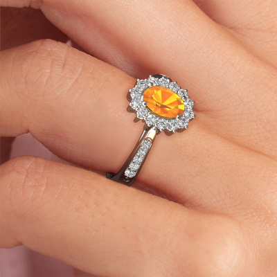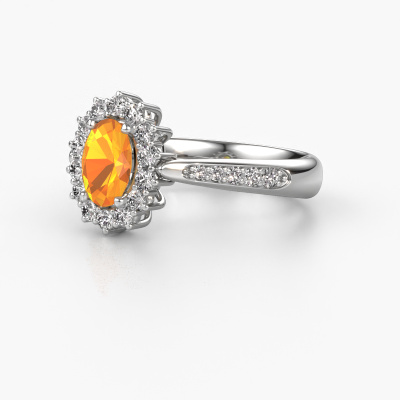 Der oben gezeigte Verlobungsring wird Margien 2 genannt. Wir nennen das einen Lady Diana Ring. Mit einem Lady Diana Verlobungsring ist der größere, zentrale Edelstein von kleineren Seitensteinen umgeben. Dieser Ring aus 14 Karat Weißgold ist besetzt mit einem 7x5 mm oval Citrin, umgeben von kleineren Diamanten als Seitensteinen. Sie kennen wahrscheinlich diesen außergewöhnlichen, traditionell Weißgold Lady Diana Ring. Es ist der berühmteste Verlobungsring der Welt. Ausschließlich für die bemerkenswerteste Person in Ihrem Leben bestimmt! Ein wirklich atemberaubender Aspekt dieses speziellen Lady Diana Rings ist sein zentraler Citrin. Die kleineren Seitensteine, die den Citrin umfassen, betonen den Glanz des mittleren Edelsteins. Dadurch sieht es so aus, als ob sie zu einem großen Edelstein verschmelzen. Aufgrund seines Designs ist das bei Lady Di Ring noch deutlicher. Unsere erfahrenen Goldschmiede möchten einen einzigartigen Ring für Sie kreieren. Wir entwerfen unseren Ring in unserem eigenen Studio. Das macht es Ihnen leicht, den Ring nach Ihren Wünschen zu gestalten. Jedes Schmuckstück ist um Ihrem Finger Glanz zu verleihen. Jeder Ring wird von unseren Goldschmieden liebevoll von Hand gefertigt.Haben Sie ein bestimmtes Budget? Sie können uns gerne kontaktieren, damit wir Ihre Optionen besprechen können. Wir bieten unsere Verlobungsringe zum garantiert besten Preis, denn wir fertigen sie auf Bestellung. Solche Preise finden Sie nirgendwo anders!Unser Team fügt unserer Online-Kollektion täglich neue Designs hinzu. Unsere Designer und Goldschmiede arbeiten zusammen, um das beste Design zu kreieren. Wir bemühen uns, eine vielfältige Kollektion von Schmuckstücken anzubieten. Vielleicht haben Sie ein bestimmtes Design im Sinn. Eines, dass Sie irgendwo gesehen haben. Gerne geben wir Ihnen eine kostenlose Beratung. Wir machen Ihnen ein Angebot, basierend auf einem fairen Preis/Leistungsverhältnis, das Sie verblüffen wird.Um es einfacher zu machen, bieten wir eine kostenlose 30-tägige Rücksendung.