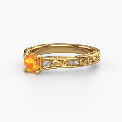 Der oben gezeigte Ring wird Mallory rnd genannt. Es ist ein Pavé Solitär Ring, da er einen zentralen Edelstein und ein Band mit Pavé-Fassung hat. Dieser 14 Karat Gold ring ist mit einem 5 mm rund Citrin-Mittelstein besetzt und das Band hat eine Pavé-Fassung mit Lab grown Diamant. Jedes Schmuckstück wird von unseren Meister-Goldschmieden in unserem eigenen Studio für Sie gefertigt.Dieser Vintage Gold Pavé Solitär Verlobungsring mit Pavé-Fassung hat einen exquisiten, rund Citrin als Mittelstein. Um den zentralen Stein noch mehr zu betonen, hat das Band eine Pavé-Fassung mit weiteren Lab grown Diamant. Durch die offenen Krappen kann das Licht aus mehreren Winkeln auf den Citrin treffen und der Citrin-Ring funkelt noch mehr. Das obere Foto zeigt die leidenschaftlich handgefertigten Details des Rings. Die hohe Positionierung der Mittelstein ist ein echter Blickfang. Der perfekte Verlobungsring für das Kronjuwel Ihres Lebens!Da wir unsere eigenen Ringe entwerfen und liefern, können wir Ihnen einen Verlobungsring zu einem Preis anbieten, den Sie nirgendwo anders finden. Ein Ring wird auf Bestellung angefertigt, wodurch kein überschüssiges Material anfällt. So können wir Ihnen ein gutes Angebot zum besten Preis machen. Wir verstehen, dass es sich riskant anfühlt, Ihren Verlobungsring online zu kaufen. Jedoch helfen wir Ihnen gerne beim Designprozess unter Berücksichtigung Ihres Budgets.Verschiedene Arten von neuen Ringen werden täglich von unserem Team angefertigt. Vielleicht haben Sie irgendwo einen Pavé Solitär Verlobungsring gefunden. Einen, den Sie Ihrem Liebsten schenken möchten. Bitte zögern Sie nicht, unseren Schmuckdesignern Ihre Gedanken und Ihr Design zu zeigen. Wir würden gerne Ihr Design in einen Vintage Verlobungsring verwandeln. Sie können die Entwicklungen Ihres Ringdesigns verfolgen, da wir sehr detaillierte 3D-Zeichnungen verwenden. Darüber hinaus können Sie einen Dummy des Designs bestellen. Ein Dummy ist ein Kunststoffring, der nach Ihrem Ringdesign gestaltet werden kann. Sie können ihn anprobieren und prüfen, ob der Verlobungsring Ihren Vorstellungen entspricht. Wir senden Ihnen gerne ein unverbindliches Angebot zu einem fairen Preis/Leistungsverhältnis. Das Angebot wird Sie angesichts der Qualität des Rings und der Edelsteine verblüffen.Um es einfacher zu machen, bieten wir eine kostenlose 30-tägige Rücksendung.