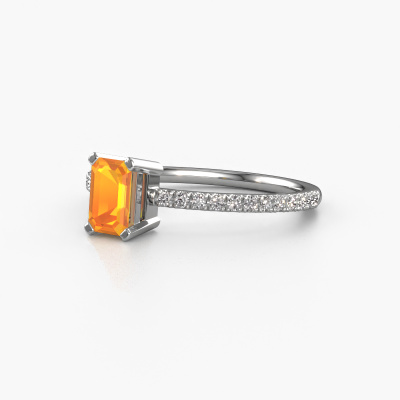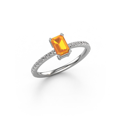 Der oben gezeigte Ring wird Denita 2 EME genannt. Es ist ein Pavé Solitär Ring, da er einen zentralen Edelstein und ein Band mit Pavé-Fassung hat. Dieser Platin ring ist mit einem 6x4 mm smaragd schliff Citrin-Mittelstein besetzt und das Band hat eine Pavé-Fassung mit Diamanten. Jedes Schmuckstück wird von unseren Meister-Goldschmieden in unserem eigenen Studio für Sie gefertigt.Dieser traditionell Platin Pavé Solitär Verlobungsring mit Pavé-Fassung hat einen exquisiten, smaragd schliff Citrin als Mittelstein. Um den zentralen Stein noch mehr zu betonen, hat das Band eine Pavé-Fassung mit weiteren Diamanten. Durch die offenen Krappen kann das Licht aus mehreren Winkeln auf den Citrin treffen und der Citrin-Ring funkelt noch mehr. Das obere Foto zeigt die leidenschaftlich handgefertigten Details des Rings. Die hohe Positionierung der Mittelstein ist ein echter Blickfang. Der perfekte Verlobungsring für das Kronjuwel Ihres Lebens!Haben Sie ein bestimmtes Budget? Sie können uns gerne kontaktieren, damit wir Ihre Optionen besprechen können. Wir bieten unsere Verlobungsringe zum garantiert besten Preis, denn wir fertigen sie auf Bestellung. Solche Preise finden Sie nirgendwo anders!Unser Team fügt unserer Online-Kollektion täglich neue Designs hinzu. Unsere Designer und Goldschmiede arbeiten zusammen, um das beste Design zu kreieren. Wir bemühen uns, eine vielfältige Kollektion von Schmuckstücken anzubieten. Vielleicht haben Sie ein bestimmtes Design im Sinn. Eines, dass Sie irgendwo gesehen haben. Gerne geben wir Ihnen eine kostenlose Beratung. Wir machen Ihnen ein Angebot, basierend auf einem fairen Preis/Leistungsverhältnis, das Sie verblüffen wird.Um es einfacher zu machen, bieten wir eine kostenlose 30-tägige Rücksendung.