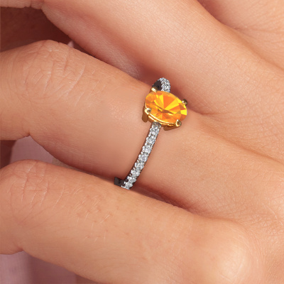 Der oben gezeigte Ring wird Lynelle 2 genannt. Es ist ein Pavé Solitär Ring, da er einen zentralen Edelstein und ein Band mit Pavé-Fassung hat. Dieser 14 Karat Weißgold ring ist mit einem 7x5 mm oval Citrin-Mittelstein besetzt und das Band hat eine Pavé-Fassung mit Diamanten. Jedes Schmuckstück ist um Ihrem Finger Glanz zu verleihen. Jeder Ring wird von unseren Goldschmieden liebevoll von Hand gefertigt.Dieser klassische Weißgold Pavé Solitär Verlobungsring mit Pavé-Fassung hat einen exquisiten, oval Citrin als Mittelstein. Um den zentralen Stein noch mehr zu betonen, hat das Band eine Pavé-Fassung mit weiteren Diamanten. Durch die offenen Krappen kann das Licht aus mehreren Winkeln auf den Citrin treffen und der Citrin-Ring funkelt noch mehr. Das obere Foto zeigt die leidenschaftlich handgefertigten Details des Rings. Die hohe Positionierung der Mittelstein ist ein echter Blickfang. Der perfekte Verlobungsring für das Kronjuwel Ihres Lebens!Nachdem Sie Ihre Bestellung aufgegeben haben, beginnen unsere Goldschmiede mit dem kreativen Prozess der Herstellung Ihres Lynelle 2 Verlobungsring. Wir haben keine Lager. Das ist vorteilhaft, da diese Kosten nicht an Sie weitergegeben werden. Daher sind wir in der Lage, Schmuck zu außergewöhnlich niedrigen Preisen anzubieten.Haben Sie einen bestimmten Ring im Sinn? Eines, dass Sie irgendwo gesehen haben. Bitte zögern Sie nicht, uns zu sagen, was Sie wollen und wir werden Ihr Design in einen Einzigartigen Verlobungsring verwandeln. Sie können die Entwicklungen Ihres Ringdesigns verfolgen, da wir 3D-Zeichnungen verwenden. Das gibt Ihnen eine realistische Vorschau Ihres Designs. Wir senden Ihnen gerne ein unverbindliches Angebot zu einem fairen Preis/Leistungsverhältnis. Es wird Sie erstaunen.Um es einfacher zu machen, bieten wir eine kostenlose 30-tägige Rücksendung.