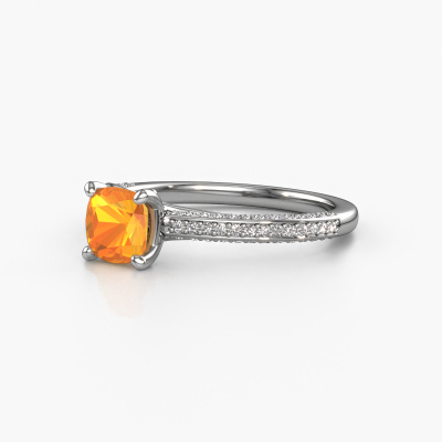 Der oben gezeigte Ring wird Elenore cus genannt. Es ist ein Pavé Solitär Ring, da er einen zentralen Edelstein und ein Band mit Pavé-Fassung hat. Dieser 14 Karat Weißgold ring ist mit einem 5.5 mm cussion Citrin-Mittelstein besetzt und das Band hat eine Pavé-Fassung mit Lab grown Diamant. Jedes Schmuckstück wird hergestellt von einem Team leidenschaftlicher Goldschmiede und Schmuckdesigner. Das wird Ihr Kronjuwel unbedingt zu einem Blickfang machen.Dieser moderne Weißgold Pavé Solitär Verlobungsring mit Pavé-Fassung hat einen exquisiten, cussion Citrin als Mittelstein. Um den zentralen Stein noch mehr zu betonen, hat das Band eine Pavé-Fassung mit weiteren Lab grown Diamant. Durch die offenen Krappen kann das Licht aus mehreren Winkeln auf den Citrin treffen und der Citrin-Ring funkelt noch mehr. Das obere Foto zeigt die leidenschaftlich handgefertigten Details des Rings. Die hohe Positionierung der Mittelstein ist ein echter Blickfang. Der perfekte Verlobungsring für das Kronjuwel Ihres Lebens!Nachdem Sie Ihre Bestellung aufgegeben haben, beginnen unsere Goldschmiede mit dem kreativen Prozess der Herstellung Ihres Elenore cus Verlobungsring. Wir haben keine Lager. Das ist vorteilhaft, da diese Kosten nicht an Sie weitergegeben werden. Daher sind wir in der Lage, Schmuck zu außergewöhnlich niedrigen Preisen anzubieten.Haben Sie irgendwo einen bestimmten Verlobungsring gefunden, den Sie Ihrem Liebsten schenken möchten? Sie können uns gerne sagen, was Sie wollen und wir werden Ihr Design in einen Einzigartigen moderne Verlobungsring verwandeln. Sie können die Entwicklungen Ihres Ringdesigns verfolgen, da wir 3D-Zeichnungen verwenden. Das gibt Ihnen eine realistische Vorschau, wie Ihr Design aussehen wird. Sie können auch einen Dummy vorbestellen. Ein Dummy ist ein Kunststoffring, der nach Ihrem Ringdesign gestaltet werden kann. Sie können ihn anprobieren und prüfen, ob seine Breite und Größe für Sie geeignet sind. Wir senden Ihnen gerne ein unverbindliches Angebot zu einem fairen Preis/Leistungsverhältnis. Sie werden in Anbetracht der Qualität des Rings und der Edelsteine überrascht sein.Um es einfacher zu machen, bieten wir eine kostenlose 30-tägige Rücksendung.