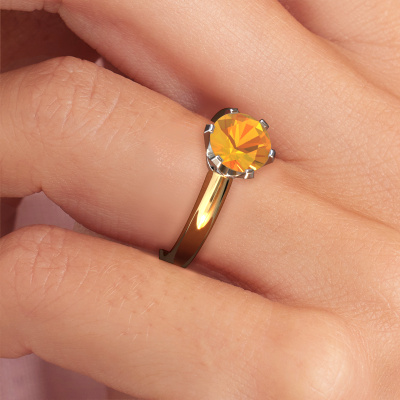Der oben gezeigte Verlobungsring wird Tiffy 1 genannt. Wir nennen das einen Solitär-Ring, denn er hat einen einzelnen Edelstein. Es ist ein 14 Karat Gold ring, mit 7 mm rund Citrin. Das Besondere an unserem Konfigurator ist dass Sie selbst einem Schmuckstück zusammenstellen können zu einem eigenen persönlichen Schmuckstück. Dieser Solitäre Verlobungsring ist gefertigt in der Edelmetall Kombination Gold mit Weißgold, aber Sie können also auch wählen aus anderen Farben. Jedes Schmuckstück wird nur für Sie persönlich hergestellt, mit Liebe zum Detail und Design. Der Solitär-Verlobungsring ist eine Sonderform des Verlobungsring. Seine offenen Krappen ermöglichen, dass Licht aus mehr Winkeln auf den Edelstein trifft. Dieser klassische Verlobungsring ist durch die hohe Positionierung des Edelsteins ein atemberaubender Blickfang. Wir schmücken diesen Solitär-Ring sorgfältig von Hand, damit Sie Ihren Anfrage mit einem einzigartigen Ring würdigen können. Die Liebe Ihres Lebens verdient nur das Beste. Mit unserer modernen Technik können wir Schmuckstücke von höchster Qualität mit größter Sorgfalt für Sie entwerfen und anpassen. Unsere Verlobungsringe sind immer um 30 Prozent günstiger als bei anderen Juwelieren. Wir fertigen Verlobungsringe auf Bestellung, also müssen wir keine großen Lager unterhalten. Wenn Sie ein bestimmtes Budget haben, beraten wir Sie gerne entsprechend.Unsere Designer und Goldschmiede arbeiten jeden Tag zusammen und versuchen, neue Schmuckstücke zu kreieren. Vielleicht haben Sie irgendwo einen schönen, klassische Verlobungsring gefunden, nach dem Ihr einzigartiger Ring gestaltet werden kann. Setzen Sie sich mit uns in Verbindung. Wir machen Ihnen ein Angebot, basierend auf einem fairen Preis/Leistungsverhältnis, das Sie begeistern wird.Um es einfacher zu machen, bieten wir eine kostenlose 30-tägige Rücksendung.
