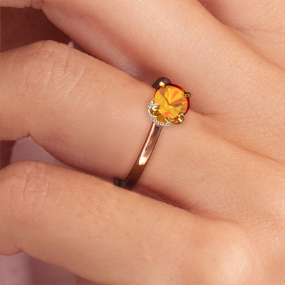 Der oben gezeigte Verlobungsring wird Crystal RND 3 genannt. Wir nennen das einen Solitär-Ring, denn er hat einen einzelnen Edelstein. Es ist ein 14 Karat Roségold ring, mit 5.5 mm rund Citrin. Das Besondere an unserem Konfigurator ist dass Sie selbst einem Schmuckstück zusammenstellen können zu einem eigenen persönlichen Schmuckstück. Dieser Solitäre Verlobungsring ist gefertigt in der Edelmetall Kombination Roségold mit Gold, aber Sie können also auch wählen aus anderen Farben. Jedes Schmuckstück wird hergestellt mit Leidenschaft und Liebe, von einem unserer Meister-Goldschmiede. Der Solitär-Verlobungsring ist eine Sonderform des Verlobungsring. Seine offenen Krappen ermöglichen, dass Licht aus mehr Winkeln auf den Edelstein trifft. Dieser klassische Verlobungsring ist durch die hohe Positionierung des Edelsteins ein atemberaubender Blickfang. Wir schmücken diesen Solitär-Ring sorgfältig von Hand, damit Sie Ihren Anfrage mit einem einzigartigen Ring würdigen können. Die Liebe Ihres Lebens verdient nur das Beste. Durch die Kombination modernster Technik mit uralter Handwerkskunst können wir alle Verlobungsringe in unserem eigenen Studio anfertigen. Jedes Schmuckstück wird auf Anfrage gefertigt. Das ist vorteilhaft, weil wir Ihnen dadurch einen Preis anbieten können, den Sie nirgendwo anders finden.Verschiedene Arten von neuen Ringen werden täglich von unserem Team angefertigt. Vielleicht haben Sie irgendwo einen Solitär Verlobungsring gefunden. Einen, den Sie Ihrem Liebsten schenken möchten. Bitte zögern Sie nicht, unseren Schmuckdesignern Ihre Gedanken und Ihr Design zu zeigen. Wir würden gerne Ihr Design in einen klassische Verlobungsring verwandeln. Sie können die Entwicklungen Ihres Ringdesigns verfolgen, da wir sehr detaillierte 3D-Zeichnungen verwenden. Darüber hinaus können Sie einen Dummy des Designs bestellen. Ein Dummy ist ein Kunststoffring, der nach Ihrem Ringdesign gestaltet werden kann. Sie können ihn anprobieren und prüfen, ob der Verlobungsring Ihren Vorstellungen entspricht. Wir senden Ihnen gerne ein unverbindliches Angebot zu einem fairen Preis/Leistungsverhältnis. Das Angebot wird Sie angesichts der Qualität des Rings und der Edelsteine verblüffen.Um es einfacher zu machen, bieten wir eine kostenlose 30-tägige Rücksendung.