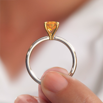 Der oben gezeigte Verlobungsring wird Crystal OVL 1 genannt. Wir nennen das einen Solitär-Ring, denn er hat einen einzelnen Edelstein. Es ist ein 14 Karat Weißgold ring, mit 8x6 mm oval Citrin. Das Besondere an unserem Konfigurator ist dass Sie selbst einem Schmuckstück zusammenstellen können zu einem eigenen persönlichen Schmuckstück. Dieser Solitäre Verlobungsring ist gefertigt in der Edelmetall Kombination Weißgold mit Gold, aber Sie können also auch wählen aus anderen Farben. Jedes Schmuckstück ist um Ihrem Finger Glanz zu verleihen. Jeder Ring wird von unseren Goldschmieden liebevoll von Hand gefertigt. Der Solitär-Verlobungsring ist eine Sonderform des Verlobungsring. Seine offenen Krappen ermöglichen, dass Licht aus mehr Winkeln auf den Edelstein trifft. Dieser klassische Verlobungsring ist durch die hohe Positionierung des Edelsteins ein atemberaubender Blickfang. Wir schmücken diesen Solitär-Ring sorgfältig von Hand, damit Sie Ihren Anfrage mit einem einzigartigen Ring würdigen können. Die Liebe Ihres Lebens verdient nur das Beste. Da wir unsere eigenen Ringe entwerfen und liefern, können wir Ihnen einen Verlobungsring zu einem Preis anbieten, den Sie nirgendwo anders finden. Ein Ring wird auf Bestellung angefertigt, wodurch kein überschüssiges Material anfällt. So können wir Ihnen ein gutes Angebot zum besten Preis machen. Wir verstehen, dass es sich riskant anfühlt, Ihren Verlobungsring online zu kaufen. Jedoch helfen wir Ihnen gerne beim Designprozess unter Berücksichtigung Ihres Budgets.Unser Team fügt unserer Online-Kollektion täglich neue Designs hinzu. Unsere Designer und Goldschmiede arbeiten zusammen, um das beste Design zu kreieren. Wir bemühen uns, eine vielfältige Kollektion von Schmuckstücken anzubieten. Vielleicht haben Sie ein bestimmtes Design im Sinn. Eines, dass Sie irgendwo gesehen haben. Gerne geben wir Ihnen eine kostenlose Beratung. Wir machen Ihnen ein Angebot, basierend auf einem fairen Preis/Leistungsverhältnis, das Sie verblüffen wird.Um es einfacher zu machen, bieten wir eine kostenlose 30-tägige Rücksendung.