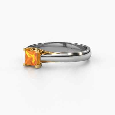 Der oben gezeigte Verlobungsring wird Mia Square genannt. Wir nennen das einen Solitär-Ring, denn er hat einen einzelnen Edelstein. Es ist ein 14 Karat Weißgold ring, mit 4 mm princess Citrin. Das Besondere an unserem Konfigurator ist dass Sie selbst einem Schmuckstück zusammenstellen können zu einem eigenen persönlichen Schmuckstück. Dieser Solitäre Verlobungsring ist gefertigt in der Edelmetall Kombination Weißgold mit Gold, aber Sie können also auch wählen aus anderen Farben. Jedes Schmuckstück wird hergestellt von einem Team leidenschaftlicher Goldschmiede und Schmuckdesigner. Das wird Ihr Kronjuwel unbedingt zu einem Blickfang machen. Der Solitär-Verlobungsring ist eine Sonderform des Verlobungsring. Seine offenen Krappen ermöglichen, dass Licht aus mehr Winkeln auf den Edelstein trifft. Dieser moderne Verlobungsring ist durch die hohe Positionierung des Edelsteins ein atemberaubender Blickfang. Wir schmücken diesen Solitär-Ring sorgfältig von Hand, damit Sie Ihren Anfrage mit einem einzigartigen Ring würdigen können. Die Liebe Ihres Lebens verdient nur das Beste. Mit unserer modernen Technik können wir Schmuckstücke von höchster Qualität mit größter Sorgfalt für Sie entwerfen und anpassen. Unsere Verlobungsringe sind immer um 30 Prozent günstiger als bei anderen Juwelieren. Wir fertigen Verlobungsringe auf Bestellung, also müssen wir keine großen Lager unterhalten. Wenn Sie ein bestimmtes Budget haben, beraten wir Sie gerne entsprechend.Haben Sie irgendwo einen bestimmten Verlobungsring gefunden, den Sie Ihrem Liebsten schenken möchten? Sie können uns gerne sagen, was Sie wollen und wir werden Ihr Design in einen Einzigartigen moderne Verlobungsring verwandeln. Sie können die Entwicklungen Ihres Ringdesigns verfolgen, da wir 3D-Zeichnungen verwenden. Das gibt Ihnen eine realistische Vorschau, wie Ihr Design aussehen wird. Sie können auch einen Dummy vorbestellen. Ein Dummy ist ein Kunststoffring, der nach Ihrem Ringdesign gestaltet werden kann. Sie können ihn anprobieren und prüfen, ob seine Breite und Größe für Sie geeignet sind. Wir senden Ihnen gerne ein unverbindliches Angebot zu einem fairen Preis/Leistungsverhältnis. Sie werden in Anbetracht der Qualität des Rings und der Edelsteine überrascht sein.Um es einfacher zu machen, bieten wir eine kostenlose 30-tägige Rücksendung.