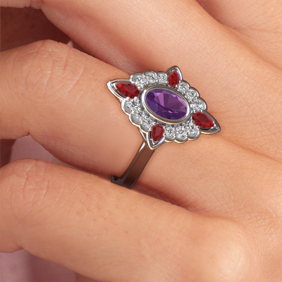 Dieser Verlobungsring aus 14 Karat Weißgold heißt Door und hat einen 7x5 mm Amethyst. Ein außergewöhnlicher, Weißgold Vintage Ring. Einer, der die Liebe Ihres Lebens mit Sicherheit wie ein Amethyst erstrahlen lässt! Das hoffen wir zu erreichen. Dieser Vintage Verlobungsring ist mit exquisiten Amethyst besetzt. Welchen Edelstein Sie aus unserer Auswahl haben möchten, liegt ganz bei Ihnen. Der Edelstein wird mit großer Sorgfalt ausgewählt. Denn wir glauben, dass Ihr gewagte Verlobungsring nur mit dem schönsten Edelstein gekrönt sein darf. Sehen Sie das auch so? Unser erfahrener Juwelier entwirft Ihren Ring in unserem eigenen Studio, wo der Amethyst mit großer Präzision eingefasst wird. Der Ring wird dann bearbeitet und poliert, bis er perfekt ist. Nichts als das Beste für die Liebe Ihres Lebens! Jedes Schmuckstück wird von unseren Meister-Goldschmieden in unserem eigenen Studio für Sie gefertigt.Nach Erhalt Ihrer Bestellung beginnen unsere Goldschmiede mit Leidenschaft den kreativen Prozess und fertigen Ihren Verlobungsring in unserem eigenen Studio. Da wir keine großen Lager haben, werden diese Kosten nicht an Sie weitergegeben. Unsere Preisgestaltung ist der Beweis dafür! Wir bieten Schmuck zum niedrigsten Preis, garantiert.Unser Team fügt unserer Online-Kollektion täglich neue Designs hinzu. Unsere Designer und Goldschmiede arbeiten zusammen, um das beste Design zu kreieren. Wir bemühen uns, eine vielfältige Kollektion von Schmuckstücken anzubieten. Vielleicht haben Sie ein bestimmtes Design im Sinn. Eines, dass Sie irgendwo gesehen haben. Gerne geben wir Ihnen eine kostenlose Beratung. Wir machen Ihnen ein Angebot, basierend auf einem fairen Preis/Leistungsverhältnis, das Sie verblüffen wird.Um es einfacher zu machen, bieten wir eine kostenlose 30-tägige Rücksendung.