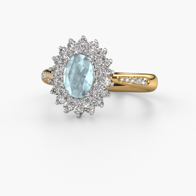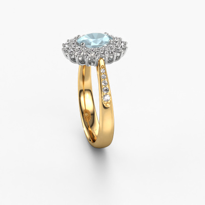 Der oben gezeigte Ring, mit dem Namen Alina 2, nennen wir einen Cluster Verlobungsring. Der Cluster Ring trägt einem zentralen Edelstein, umgeben von kleineren Steinen. Diese Version in 14 Karat Gold hat einen oval Aquamarin von oval als Mittelstein, umschlossen von kleineren Diamanten. Was diesen exklusive Gold Cluster Ring besonders macht, sind die kleinen Edelsteine rund um den zentralen Aquamarin, die wie eine schöne Blume geformt sind. Der umgebende Steinkranz umrahmt den Mittelstein so, dass er größer erscheint. Diese Art von Verlobungsring wird auch Blumen- oder Rosettenring genannt. Es ist sehr wichtig, dass die kleineren Aquamarins identisch positioniert sind, so dass es kein Spiel im Licht, sondern eine perfekte Einheit ergibt. Unsere erfahrenen Juweliere erledigen diese Arbeit. Jeder einzelne Stein wird sorgfältig von Hand gesetzt. Während der Herstellung wird der Lichteinfall ständig überwacht, um sicherzustellen, dass der spezielle Cluster-Effekt noch sichtbar ist. Am Ende bekommen Sie den perfekten Verlobungsring mit einem strahlenden Aquamarin Edelstein Herzstück. Sie können sich die Wirkung eines solchen Ringes vorstellen, wenn Sie ihn an ihrem besonderen Tag für die Liebe Ihres Lebens zum Leuchten bringen. Jedes Schmuckstück wird nur für Sie persönlich hergestellt, mit Liebe zum Detail und Design.Durch die Kombination modernster Technik mit uralter Handwerkskunst können wir alle Verlobungsringe in unserem eigenen Studio anfertigen. Jedes Schmuckstück wird auf Anfrage gefertigt. Das ist vorteilhaft, weil wir Ihnen dadurch einen Preis anbieten können, den Sie nirgendwo anders finden.Haben Sie irgendwo einen bestimmten Verlobungsring gefunden, den Sie Ihrem Liebsten schenken möchten? Sie können uns gerne sagen, was Sie wollen und wir werden Ihr Design in einen Einzigartigen exklusive Verlobungsring verwandeln. Sie können die Entwicklungen Ihres Ringdesigns verfolgen, da wir 3D-Zeichnungen verwenden. Das gibt Ihnen eine realistische Vorschau, wie Ihr Design aussehen wird. Sie können auch einen Dummy vorbestellen. Ein Dummy ist ein Kunststoffring, der nach Ihrem Ringdesign gestaltet werden kann. Sie können ihn anprobieren und prüfen, ob seine Breite und Größe für Sie geeignet sind. Wir senden Ihnen gerne ein unverbindliches Angebot zu einem fairen Preis/Leistungsverhältnis. Sie werden in Anbetracht der Qualität des Rings und der Edelsteine überrascht sein.Um es einfacher zu machen, bieten wir eine kostenlose 30-tägige Rücksendung.