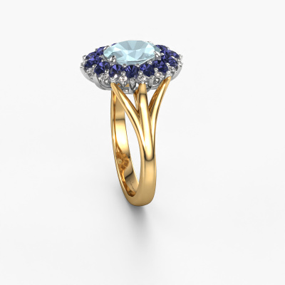 Der oben gezeigte Ring, mit dem Namen Lidia, nennen wir einen Cluster Verlobungsring. Der Cluster Ring trägt einem zentralen Edelstein, umgeben von kleineren Steinen. Diese Version in 14 Karat Gold hat einen oval Aquamarin von oval als Mittelstein, umschlossen von kleineren Saphir. Was diesen Vintage Gold Cluster Ring besonders macht, sind die kleinen Edelsteine rund um den zentralen Aquamarin, die wie eine schöne Blume geformt sind. Der umgebende Steinkranz umrahmt den Mittelstein so, dass er größer erscheint. Diese Art von Verlobungsring wird auch Blumen- oder Rosettenring genannt. Es ist sehr wichtig, dass die kleineren Aquamarins identisch positioniert sind, so dass es kein Spiel im Licht, sondern eine perfekte Einheit ergibt. Unsere erfahrenen Juweliere erledigen diese Arbeit. Jeder einzelne Stein wird sorgfältig von Hand gesetzt. Während der Herstellung wird der Lichteinfall ständig überwacht, um sicherzustellen, dass der spezielle Cluster-Effekt noch sichtbar ist. Am Ende bekommen Sie den perfekten Verlobungsring mit einem strahlenden Aquamarin Edelstein Herzstück. Sie können sich die Wirkung eines solchen Ringes vorstellen, wenn Sie ihn an ihrem besonderen Tag für die Liebe Ihres Lebens zum Leuchten bringen. Jedes Schmuckstück wird hergestellt mit Leidenschaft und Liebe, von einem unserer Meister-Goldschmiede.Durch die Kombination modernster Technik mit uralter Handwerkskunst können wir alle Verlobungsringe in unserem eigenen Studio anfertigen. Jedes Schmuckstück wird auf Anfrage gefertigt. Das ist vorteilhaft, weil wir Ihnen dadurch einen Preis anbieten können, den Sie nirgendwo anders finden.Haben Sie irgendwo einen bestimmten Verlobungsring gefunden, den Sie Ihrem Liebsten schenken möchten? Sie können uns gerne sagen, was Sie wollen und wir werden Ihr Design in einen Einzigartigen Vintage Verlobungsring verwandeln. Sie können die Entwicklungen Ihres Ringdesigns verfolgen, da wir 3D-Zeichnungen verwenden. Das gibt Ihnen eine realistische Vorschau, wie Ihr Design aussehen wird. Sie können auch einen Dummy vorbestellen. Ein Dummy ist ein Kunststoffring, der nach Ihrem Ringdesign gestaltet werden kann. Sie können ihn anprobieren und prüfen, ob seine Breite und Größe für Sie geeignet sind. Wir senden Ihnen gerne ein unverbindliches Angebot zu einem fairen Preis/Leistungsverhältnis. Sie werden in Anbetracht der Qualität des Rings und der Edelsteine überrascht sein.Um es einfacher zu machen, bieten wir eine kostenlose 30-tägige Rücksendung.