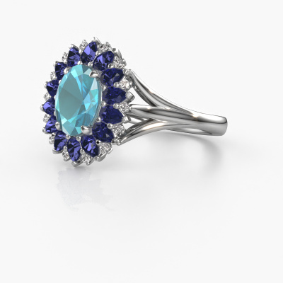 Der oben gezeigte Ring, mit dem Namen Lidia, nennen wir einen Cluster Verlobungsring. Der Cluster Ring trägt einem zentralen Edelstein, umgeben von kleineren Steinen. Diese Version in Platin hat einen oval Blau Topas von oval als Mittelstein, umschlossen von kleineren Saphir. Was diesen Vintage Platin Cluster Ring besonders macht, sind die kleinen Edelsteine rund um den zentralen Blau Topas, die wie eine schöne Blume geformt sind. Der umgebende Steinkranz umrahmt den Mittelstein so, dass er größer erscheint. Diese Art von Verlobungsring wird auch Blumen- oder Rosettenring genannt. Es ist sehr wichtig, dass die kleineren Blaue Topas identisch positioniert sind, so dass es kein Spiel im Licht, sondern eine perfekte Einheit ergibt. Unsere erfahrenen Juweliere erledigen diese Arbeit. Jeder einzelne Stein wird sorgfältig von Hand gesetzt. Während der Herstellung wird der Lichteinfall ständig überwacht, um sicherzustellen, dass der spezielle Cluster-Effekt noch sichtbar ist. Am Ende bekommen Sie den perfekten Verlobungsring mit einem strahlenden Blau Topas Edelstein Herzstück. Sie können sich die Wirkung eines solchen Ringes vorstellen, wenn Sie ihn an ihrem besonderen Tag für die Liebe Ihres Lebens zum Leuchten bringen. Jedes Schmuckstück wird hergestellt mit Leidenschaft und Liebe, von einem unserer Meister-Goldschmiede.Durch die Kombination modernster Technik mit uralter Handwerkskunst können wir alle Verlobungsringe in unserem eigenen Studio anfertigen. Jedes Schmuckstück wird auf Anfrage gefertigt. Das ist vorteilhaft, weil wir Ihnen dadurch einen Preis anbieten können, den Sie nirgendwo anders finden.Haben Sie irgendwo einen bestimmten Verlobungsring gefunden, den Sie Ihrem Liebsten schenken möchten? Sie können uns gerne sagen, was Sie wollen und wir werden Ihr Design in einen Einzigartigen Vintage Verlobungsring verwandeln. Sie können die Entwicklungen Ihres Ringdesigns verfolgen, da wir 3D-Zeichnungen verwenden. Das gibt Ihnen eine realistische Vorschau, wie Ihr Design aussehen wird. Sie können auch einen Dummy vorbestellen. Ein Dummy ist ein Kunststoffring, der nach Ihrem Ringdesign gestaltet werden kann. Sie können ihn anprobieren und prüfen, ob seine Breite und Größe für Sie geeignet sind. Wir senden Ihnen gerne ein unverbindliches Angebot zu einem fairen Preis/Leistungsverhältnis. Sie werden in Anbetracht der Qualität des Rings und der Edelsteine überrascht sein.Um es einfacher zu machen, bieten wir eine kostenlose 30-tägige Rücksendung.