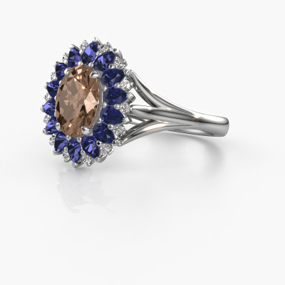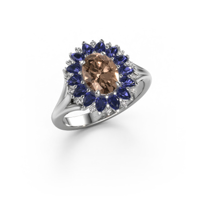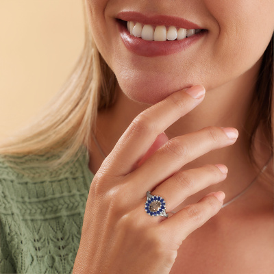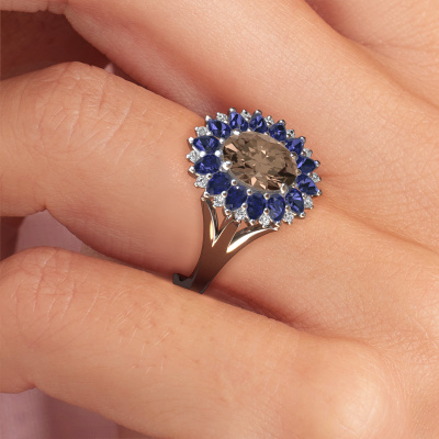 Der oben gezeigte Ring, mit dem Namen Lidia, nennen wir einen Cluster Verlobungsring. Der Cluster Ring trägt einem zentralen Edelstein, umgeben von kleineren Steinen. Diese Version in Platin hat einen oval Braun Diamant von oval als Mittelstein, umschlossen von kleineren Saphir. Was diesen Vintage Platin Cluster Ring besonders macht, sind die kleinen Edelsteine rund um den zentralen Braun Diamant, die wie eine schöne Blume geformt sind. Der umgebende Steinkranz umrahmt den Mittelstein so, dass er größer erscheint. Diese Art von Verlobungsring wird auch Blumen- oder Rosettenring genannt. Es ist sehr wichtig, dass die kleineren Braune Diamanten identisch positioniert sind, so dass es kein Spiel im Licht, sondern eine perfekte Einheit ergibt. Unsere erfahrenen Juweliere erledigen diese Arbeit. Jeder einzelne Stein wird sorgfältig von Hand gesetzt. Während der Herstellung wird der Lichteinfall ständig überwacht, um sicherzustellen, dass der spezielle Cluster-Effekt noch sichtbar ist. Am Ende bekommen Sie den perfekten Verlobungsring mit einem strahlenden Braun Diamant Edelstein Herzstück. Sie können sich die Wirkung eines solchen Ringes vorstellen, wenn Sie ihn an ihrem besonderen Tag für die Liebe Ihres Lebens zum Leuchten bringen. Jedes Schmuckstück wird hergestellt mit Leidenschaft und Liebe, von einem unserer Meister-Goldschmiede.Durch die Kombination modernster Technik mit uralter Handwerkskunst können wir alle Verlobungsringe in unserem eigenen Studio anfertigen. Jedes Schmuckstück wird auf Anfrage gefertigt. Das ist vorteilhaft, weil wir Ihnen dadurch einen Preis anbieten können, den Sie nirgendwo anders finden.Haben Sie irgendwo einen bestimmten Verlobungsring gefunden, den Sie Ihrem Liebsten schenken möchten? Sie können uns gerne sagen, was Sie wollen und wir werden Ihr Design in einen Einzigartigen Vintage Verlobungsring verwandeln. Sie können die Entwicklungen Ihres Ringdesigns verfolgen, da wir 3D-Zeichnungen verwenden. Das gibt Ihnen eine realistische Vorschau, wie Ihr Design aussehen wird. Sie können auch einen Dummy vorbestellen. Ein Dummy ist ein Kunststoffring, der nach Ihrem Ringdesign gestaltet werden kann. Sie können ihn anprobieren und prüfen, ob seine Breite und Größe für Sie geeignet sind. Wir senden Ihnen gerne ein unverbindliches Angebot zu einem fairen Preis/Leistungsverhältnis. Sie werden in Anbetracht der Qualität des Rings und der Edelsteine überrascht sein.Um es einfacher zu machen, bieten wir eine kostenlose 30-tägige Rücksendung.